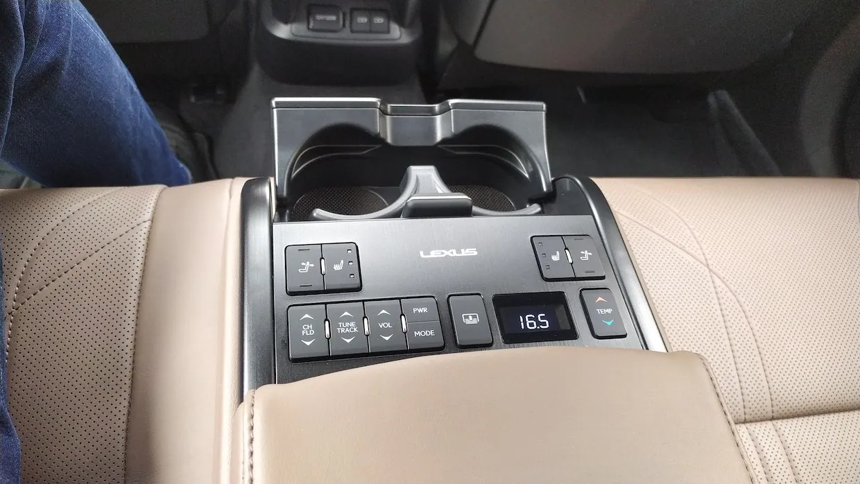А поки мене везуть з офіса до дому затуляю бокові вікна перфорованими шторками та відкидаю центральний підлокітник. Саме в ньому приховані органи керування масою опцій. Тут настроюю собі комфортну температуру на клімат-контролі, регулюю нахил спинки заднього сидіння та навіть перемикаю треки на айфоні водія без його на те згоди. Так можна робити, коли смартфон підʼєднано через Android Auto чи Apple СarPlay.