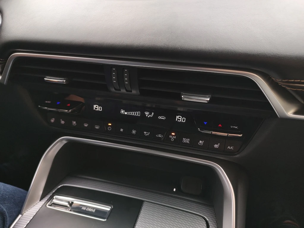 Радує CX-90 і сучасною мультимедійною складовую. Її компоненти - це 12,3-дюймовий екран по центру передньої панелі та аудиосистема Bose на 12 динаміків. Тут якісний і приємний звук, але що мене потішило найбільше - відмінна картинка з камер кругового огляду! Чітка, насичена, з гарною деталізацію і багатьма варіантами відображення. Окрім класичних видів є навіть функція See Through, яка надає максимальний кут огляду навкруги і ти ніби бачиш крізь авто.