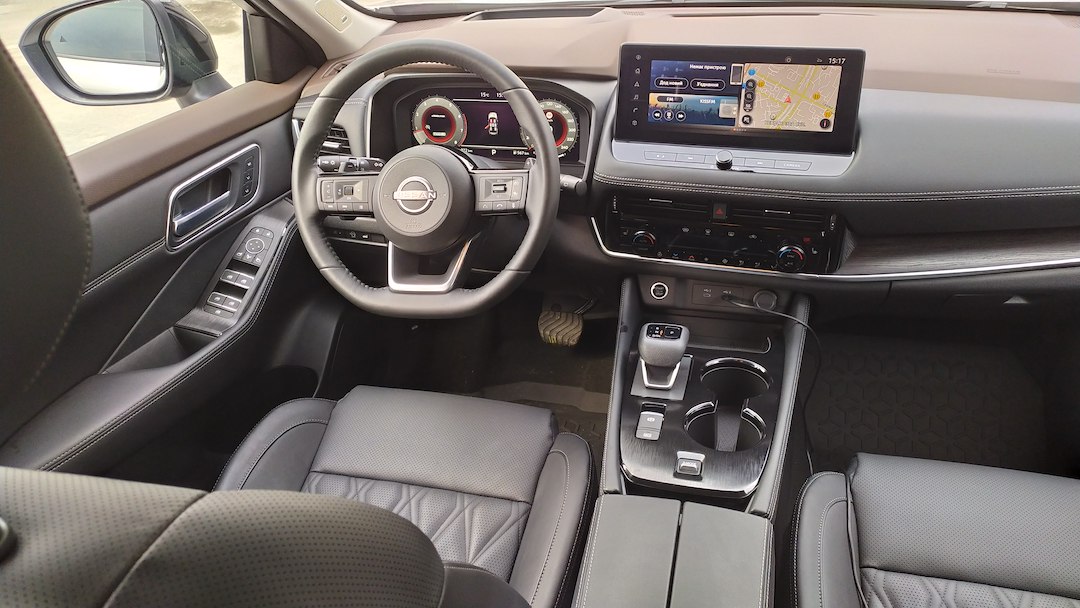 Цікаво що в новому поколінні X-Trail зовсім не передбачено дизельних модифікацій. Для європейського та відповідно українського ринків пропонуються модифікації з високотехнологічним бензиновим двигуном 1.5 VC-T та мʼяким гібридом, або електрифікована модифікація з послідовним бензоелектричним гібридом на платформі того ж бензинового двигуна та електромотору. Про те, як працює остання незабаром у нашому тест-драйві Nissan Qashqai E-Power. А поки поговоримо як поводиться машина де колеса крутить поки ще бензиновий двигун. Цікаво що трансмісія для моделі зовсім не передбачає механічну коробку передач. Тільки варіатор Xtronic. Та й привід лише на передні колеса. Повнопривідною може бути лише електрифікована модифікація E-Power 4orce, де задні колеса у рух приводить окремий електродвигун. Наша тестова машина з бензиновим мʼяким гібридом має привод лише на передні колеса.