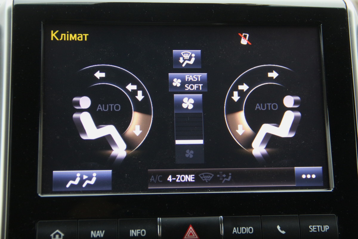 Четырехзонный климат-контроль есть во всех LC 200. Менять степень обдува вентилятора можно только на дисплее, что не очень удобно.