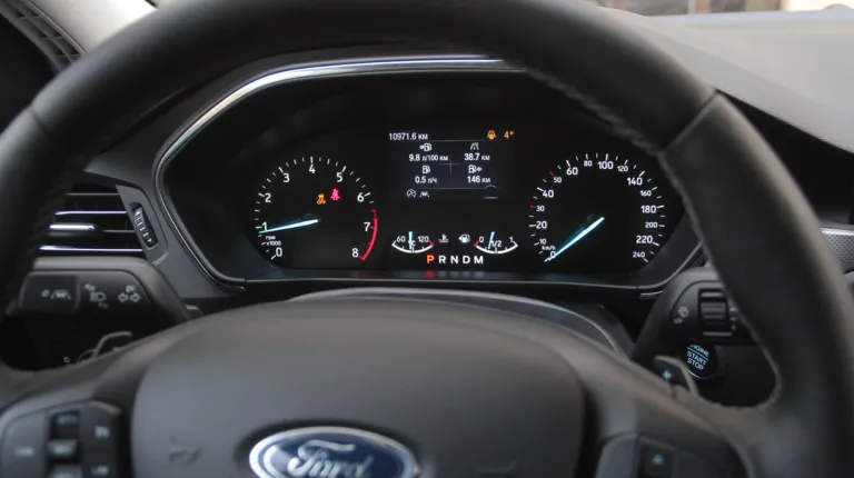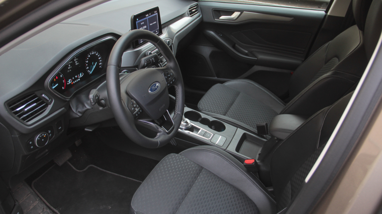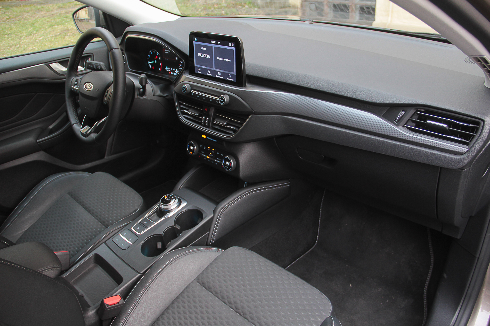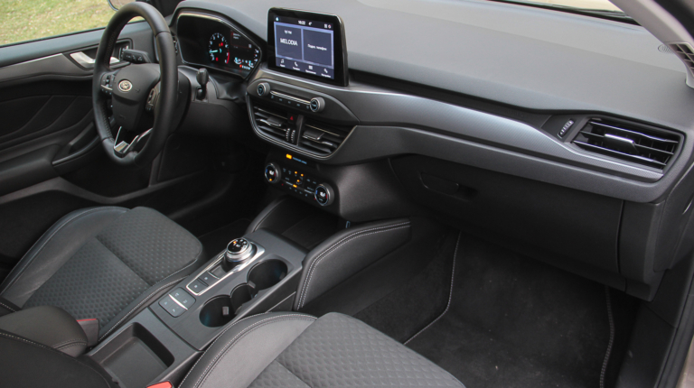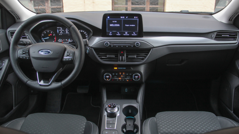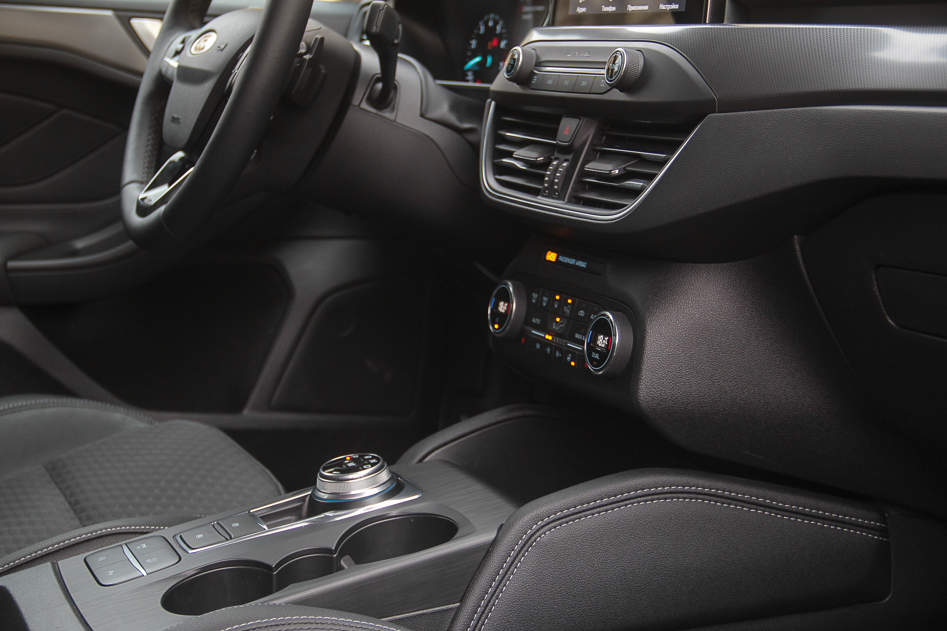 Куда интереснее, как сочетается данный силовой агрегат аж с 8-ступенчатым “автоматом”? И нет, это не PowerShift, а классическая гидромеханика. На разгон Focus идет бодро и ровно, передачи перебирает быстро – не подкопаешься. Но в некоторых “рваных” городских ритмах низшие передачи вдруг начинают капризничать – появляется неприятное подергивание. В целом, коробка любит побыстрее забираться на высшие ступени, а когда машину вдруг пришпориваешь, словно начинает в них “путаться”. В итоге сложилось ощущение, что литровому мотору 8 передач на самом деле много. Дело может поправить либо выбор другого режима с помощью отдельной клавиши – Эко или Спорт, либо же переход в ручной режим переключения.