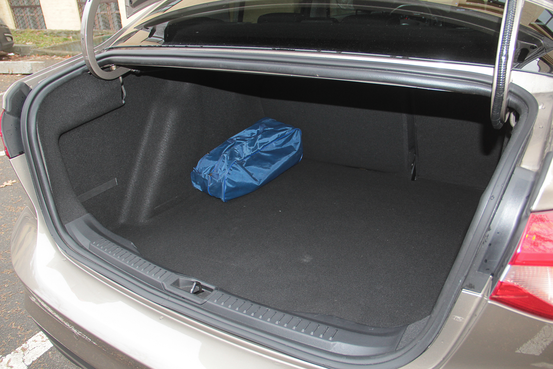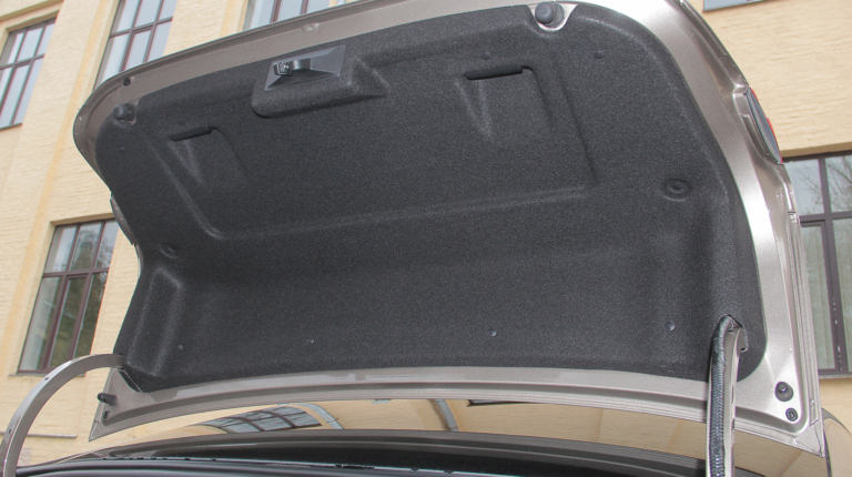 Объем багажника увеличился и составляет теперь 511 литров – тут и до дальнего края не просто дотянуться. Петли крышки простые, тобишь пусть и немного, но все же съедают полезный объем, а для закрытия самой крышки есть пара удобных ручек.
