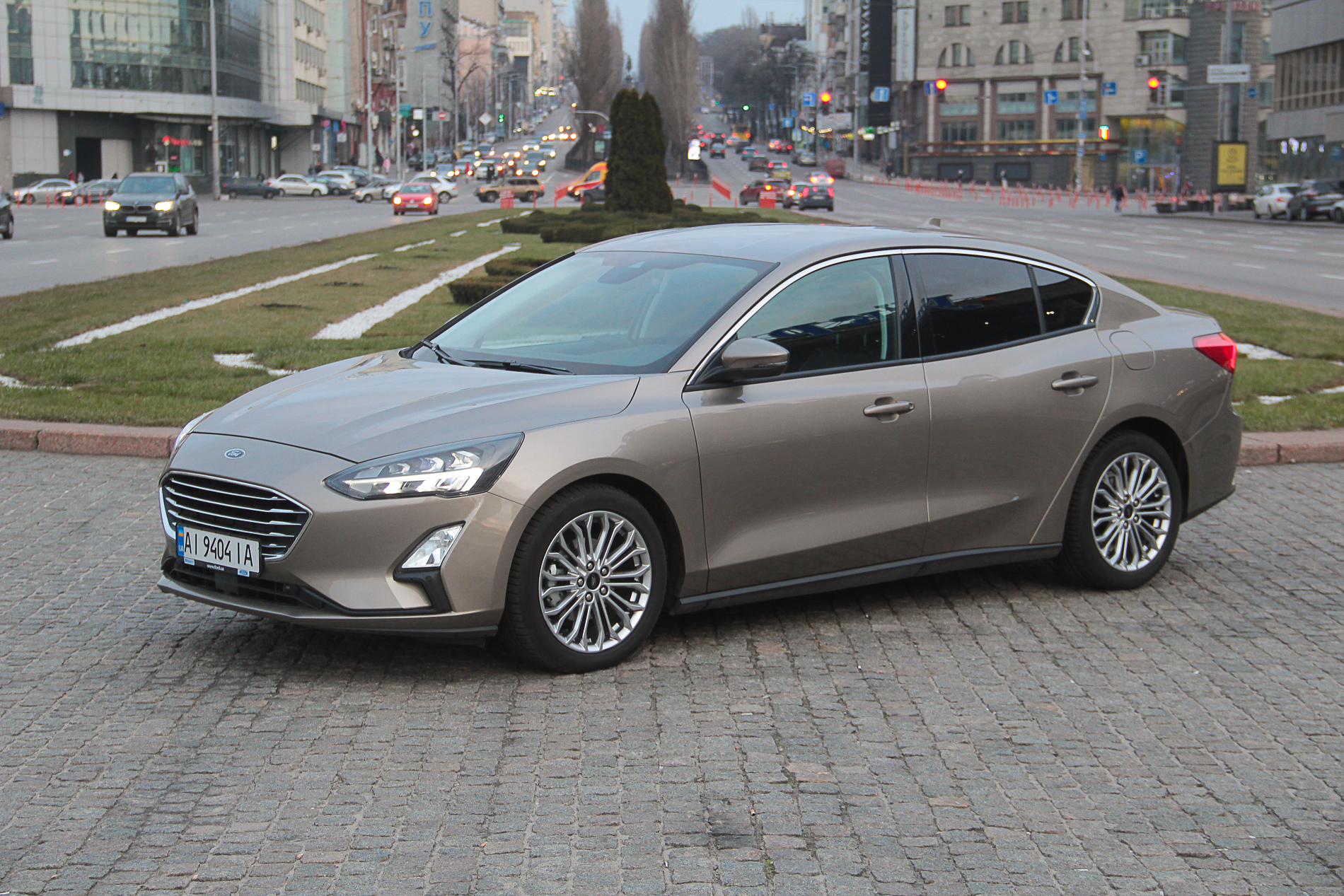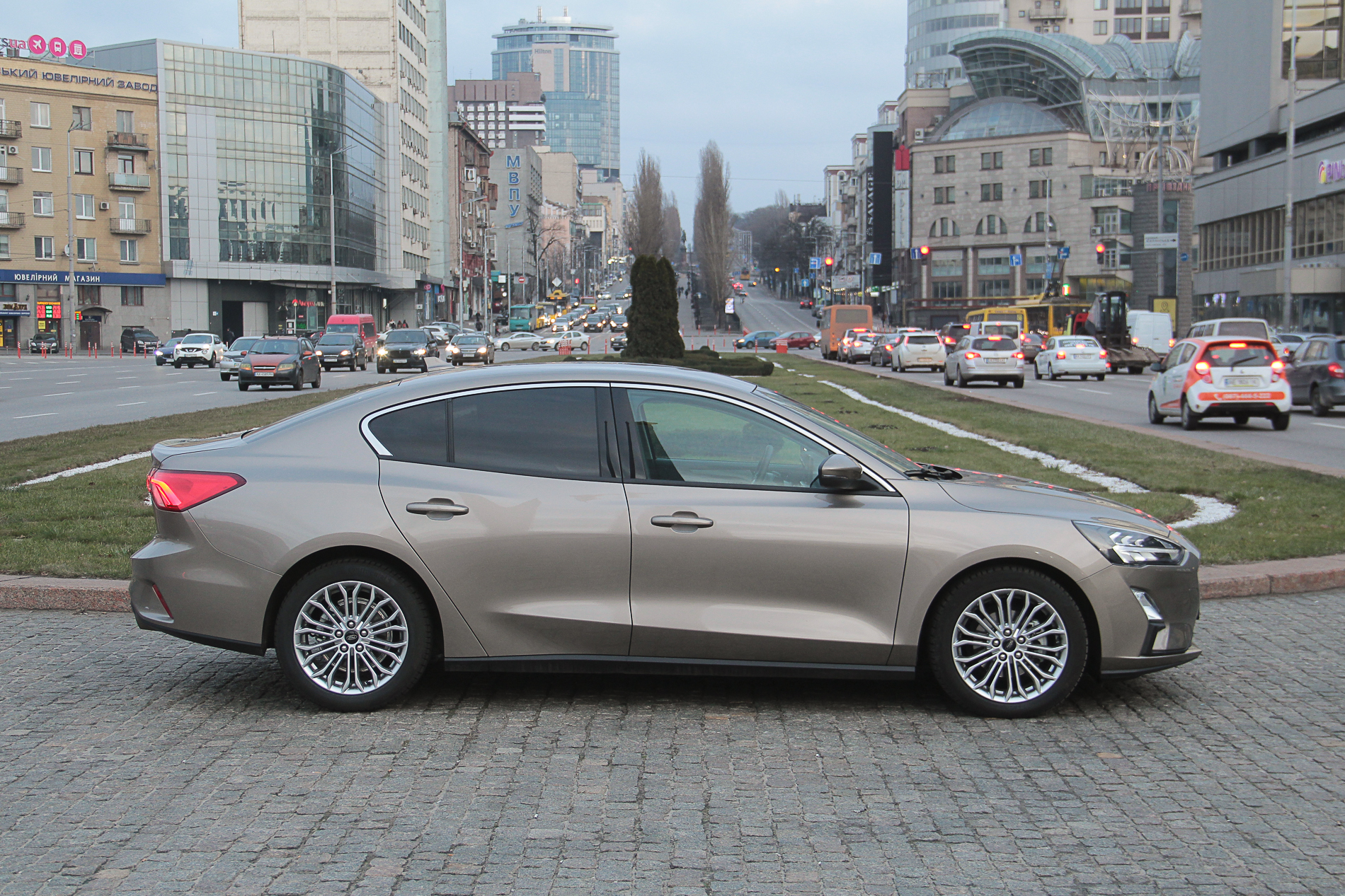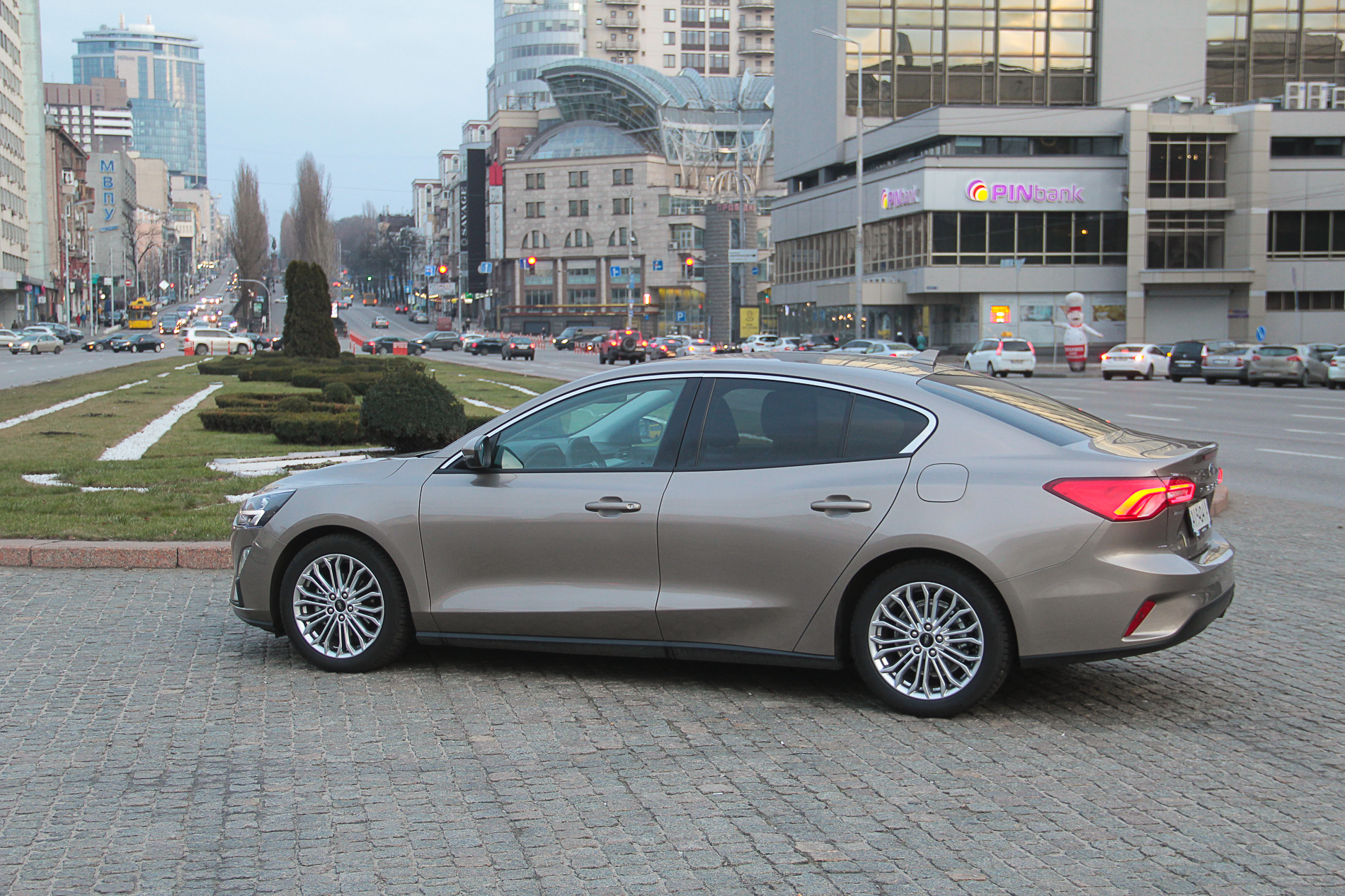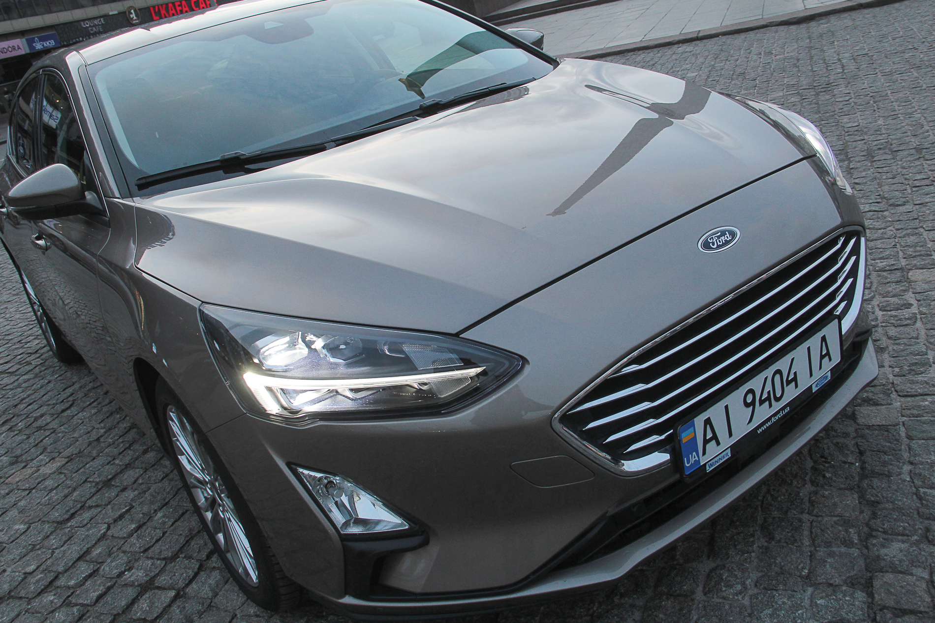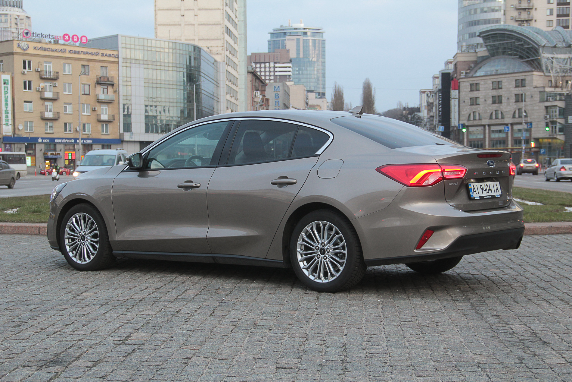 Кстати, вживую заметно, что седан стал крупнее, того и гляди покинет С-класс! Интересен новый Focus и в деталях. Даже несмотря на скромный цвет тестовой машины, они улавливаются с разных ракурсов. Вот интересно обыгранные передние противотуманки, а вот легкий “спойлер” на крышке багажника. По сравнению с прошлым поколением, которое могло сойти и за лифтбек из-за крышки багажника, нынешнее это бескомпромиссный седан. И с задних ракурсов, к слову, тоже весьма хорошо смотрится!