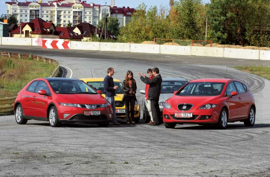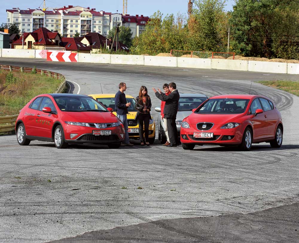 В нашем тесте участвуют сразу две пары авто. Первая пара конкурентов оснащена шестиступенчатыми МКП и испытывается по стандартной программе «Автоцентра». Вторая, с АКП (у Seat – 6 ступеней, у Honda – 5), участвует в сравнении потребительских качеств коробок передач. Для этого мы пригласили представителей клубов любителей Civic и Seat и пересадили их на «чужие» машины.