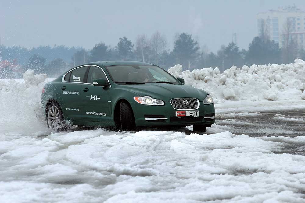 В английской машине более явно выражен спортивный алгоритм работы АКП. Это сразу заметно по взметнувшейся стрелке тахометра. Ускорение в ответ на пришпиленную к полу педаль газа «приправлено» великолепным звуком. А при интенсивном торможении в спортивном режиме XF заметно и охотно оперирует пониженными передачами.