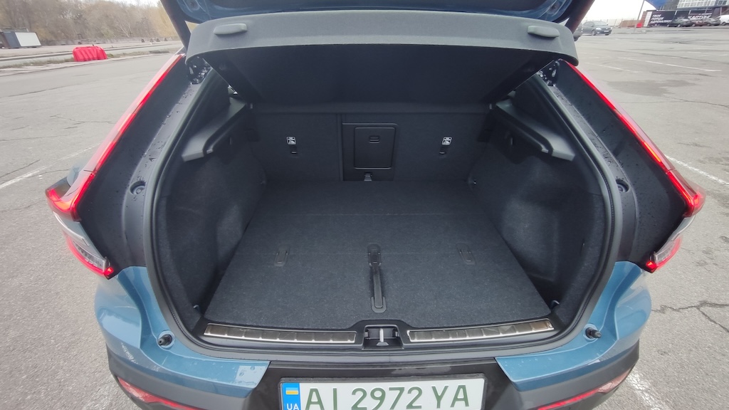 Наша машина в версії лише з заднім приводом. Базова задньопривідна С40 має мотор потужністю 170 кВт (231 к.с.) та крутний момент 330 Нм. Живить це все літій-іонна батарея ємністю 69 кВт*год. Проте, тестове авто має опцію Extendede Range і отримало збільшену до 82 кВт*год батарею та більш потужний двигун на 185 кВт (252 к.с.) та 420 Нм. Цікаво, але така додаткова потужність та особливо крутний момент мінімально позначились на динаміці прискорення. Різниця між базовою та потужнішою версією складає лише 0,1 секунди: 7,4 проти 7,3 секунд.