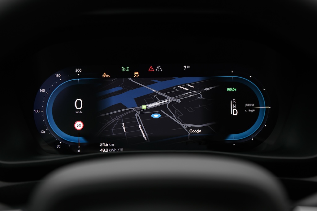 На центральній консолі головний елемент керування практично всіма функціями – великий планшет. Він звичний вже за багаться моделями Вольво. За інтерфейсом це практично андроід планшет. Все легко конектиться з телефоном. Важливим елементом є те, що Google відразу інтегрований в систему авто.