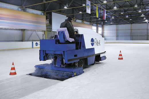 В основном машина передвигается на пониженной передаче со скоростью до 10 км/ч. Лед после ее прохождения действительно чистый, а также более ровный и скользкий, чем до обработки.