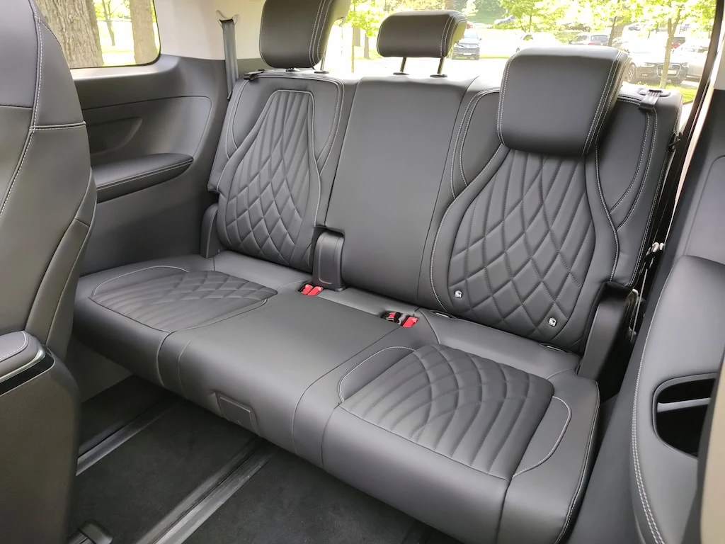 Ви знаєте, коли потрапляєш в салон, влаштовуєшся на кріслах другого ряду, то навіть не дивишся, а що там взагалі позаду. А там до речі третій ряд сидінь! Він тут звичайний, але зручний, з достатньою кількістю простору. По довжині він регулюється механічно, але відбувається це легко і просто і стане у нагоді, коли необхідно підібрати “баланс” між об'ємом багажника та простором на третьому ряду. Тобто зсуваючи третій ряд багажник можна збільшувати, або зменшувати.