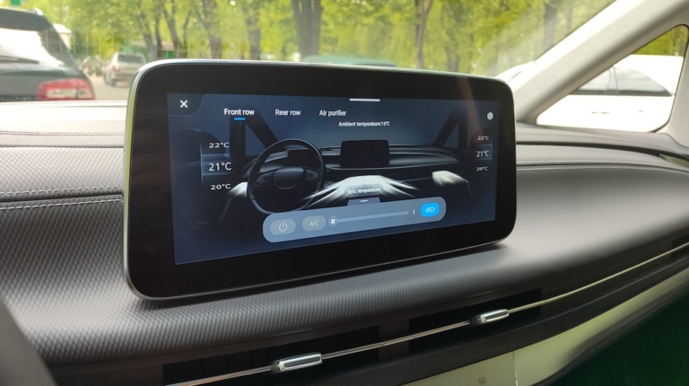 Колісна база у Mifa 9 немаленька – 3,2 метра. І ось тут, під підлогою по центру авто, і ховається чималенька батарея. Але зважаючи на зовнішні розміри і на розміри салону, її присутність аніскільки не краде внутрішнього простору. Хоча і можна помітити, що крісла в салоні розташовані трохи вище, аніж водійське та переднього пасажира.