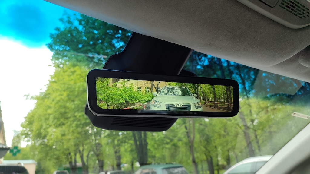 Незвично це тим, що ти бачиш картинку позаду не крізь салон, з усіми його сидіннями і підголівниками, а чисту, відразу за машиною. Камеру вмонтовано трохи вище номерного знака і вона дає гарну картинку з широким кутом огляду і не сліпне вночі. Навіть навпаки, “бачить” більше, ніж водій зміг би розгледіти у звичайне дзеркало. Але разом з тим в дощову погоду якість огляду знижується. Та й взагалі в погану погоду доведеться приділяти її очищенню більше уваги.