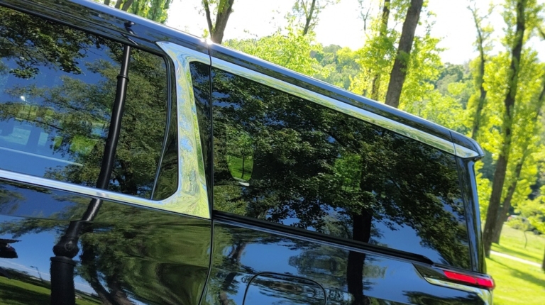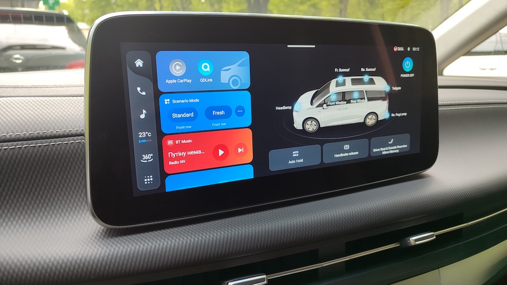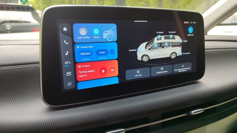 Керувати таким немаленьким бізнес-веном виявилось не складно, головне звикнути до його габаритів по ширині, а з оглядом навколо допоможуть камери кругового огляду та салонне електро “дзеркало”. Так, у звичному для нас корпусі вмонтовано не дзеркало, а гарний екран, який постійно показує картинку позаду автомобіля.