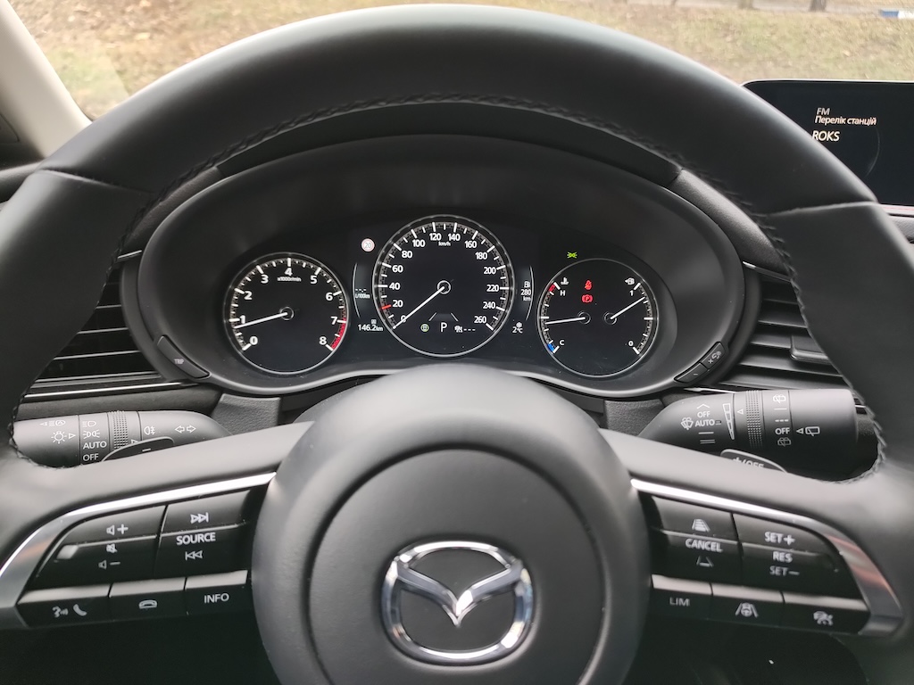 Комплекс превентивной безопасности теперь дополнен функциями предотвращения ошибочного запуска двигателя и мониторинга состояния водителя. А доработанный комплекс автоматического экстренного торможения с большей эффективностью распознает пешеходов. Да и в целом помощники внимательно следят за ситуацией вокруг автомобиля, готовы мгновенно вмешаться при необходимости. Понравилось и то, как CX-30 умеет сама держаться в полосе движения и работать адаптивным контролем.
