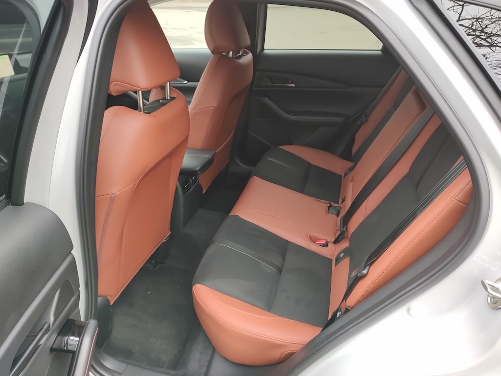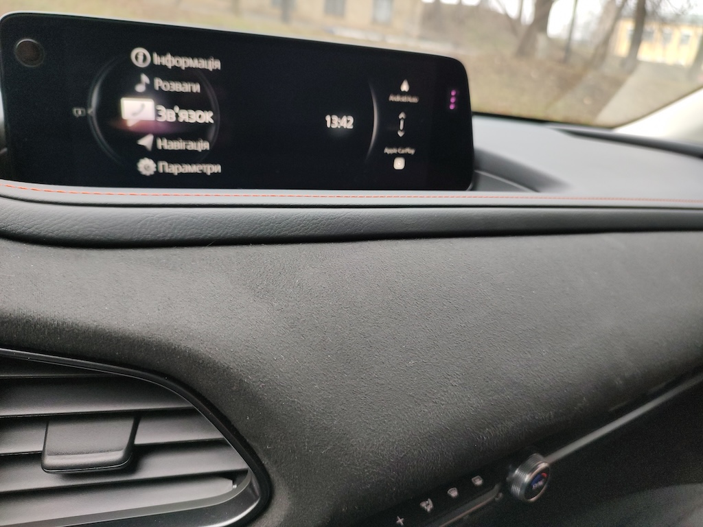 Обновление принесло Mazda CX-30 увеличенный с 8,8 до 10,25 дюймов экран мультимедийной системы, беспроводную зарядку для смартфонов, разъем USB-Type C. Управление мультимедиа уже традиционно для Mazda выполнено с помощью шайбы-джойстика и нескольких кнопок, под правой рукой водителя на центральном тоне. Отмечу, что акустика Bose здесь это не просто красивая надпись – аудиосистема действительно звучит довольно хорошо и глубоко.