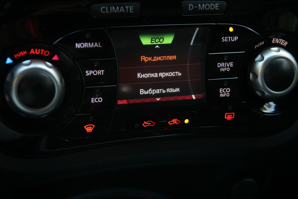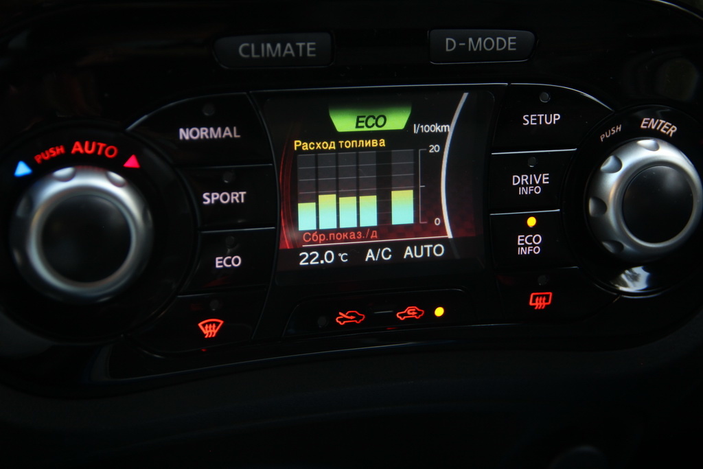 До сих пор система Nissan Dynamic Control System является оригинальной фишкой именно этой модели. В ответ на нажатие кнопки Climate или D-Mode меняется не просто информация на мониторе, но и функции механических кнопок.