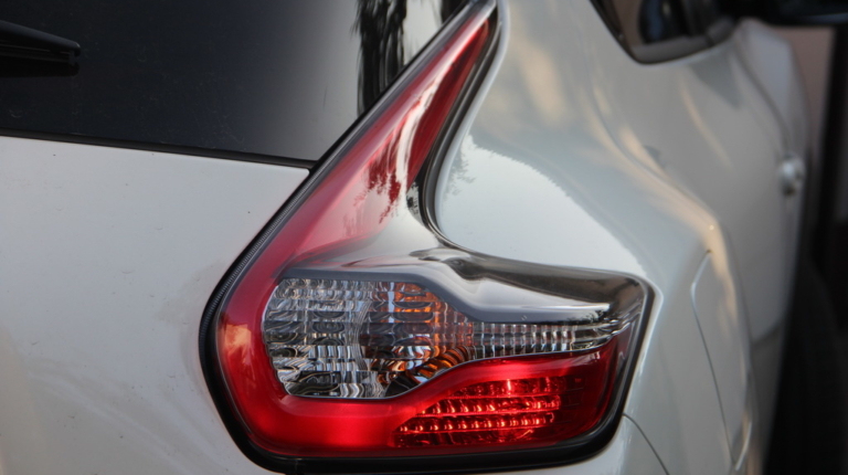 Да-да, туда, где собраны стреловидные светодиодные ходовые огни и указатели поворотов. Такая оптика появилась на Джуке в 2014 году. Но теперь корпуса этих световых приборов черные.