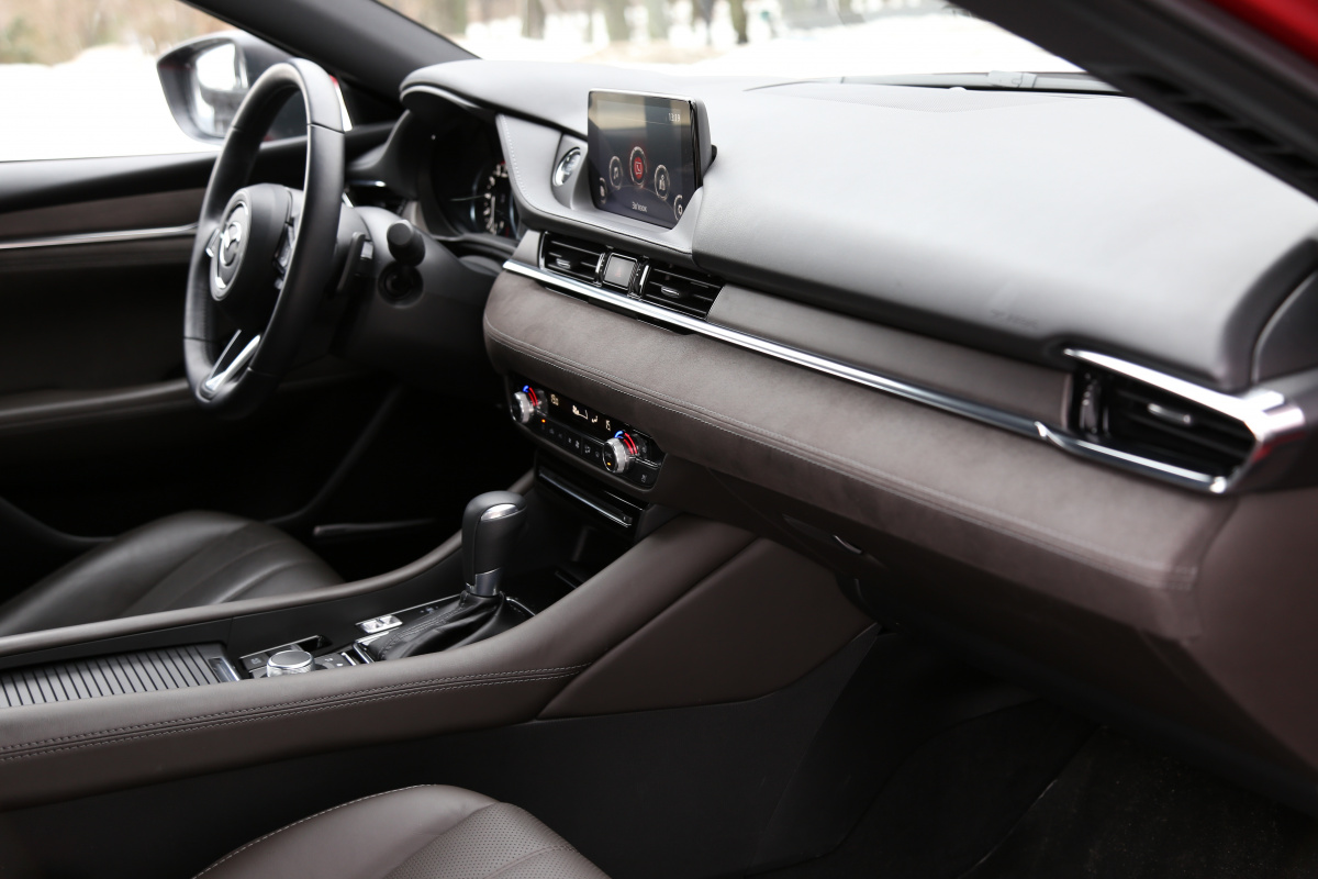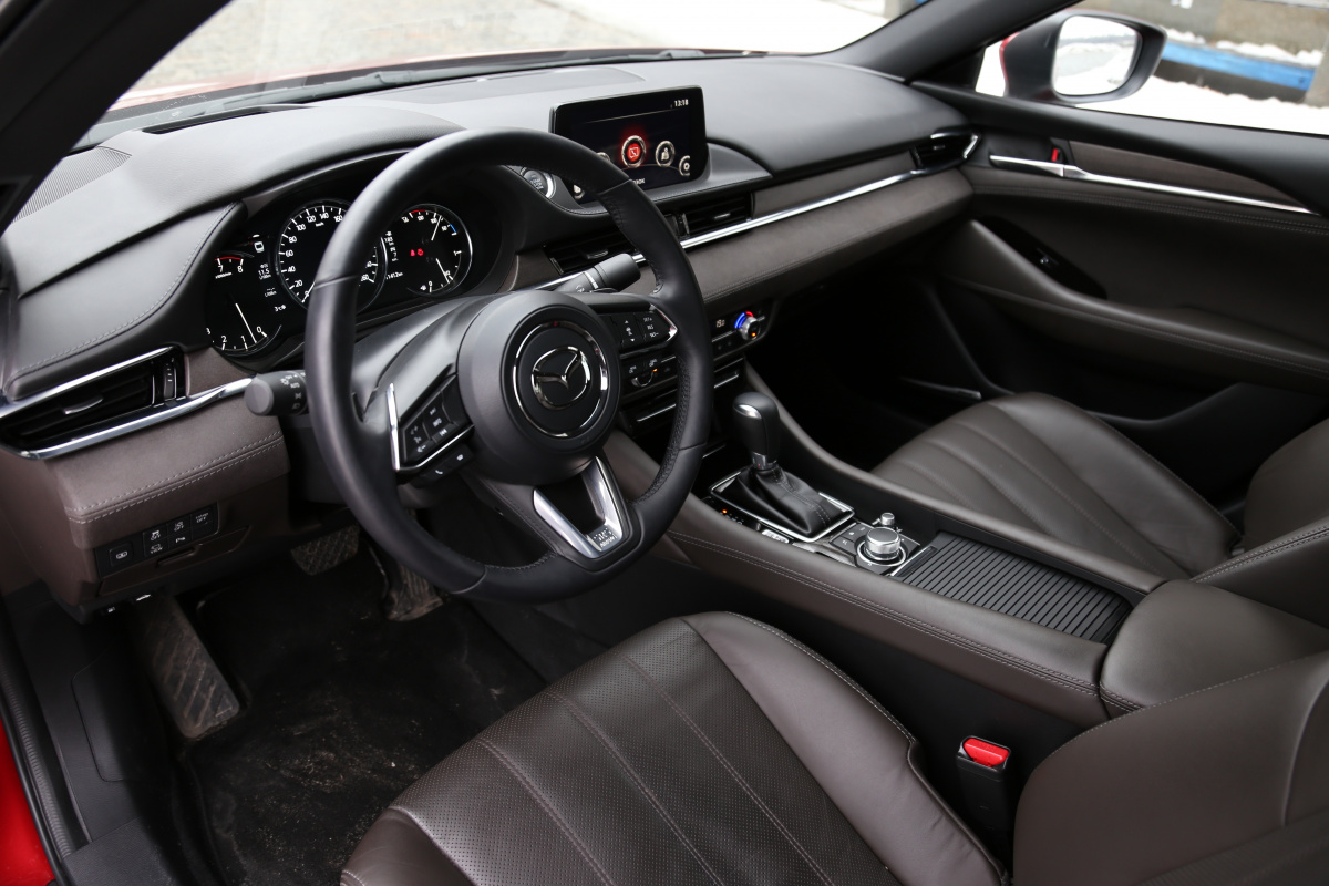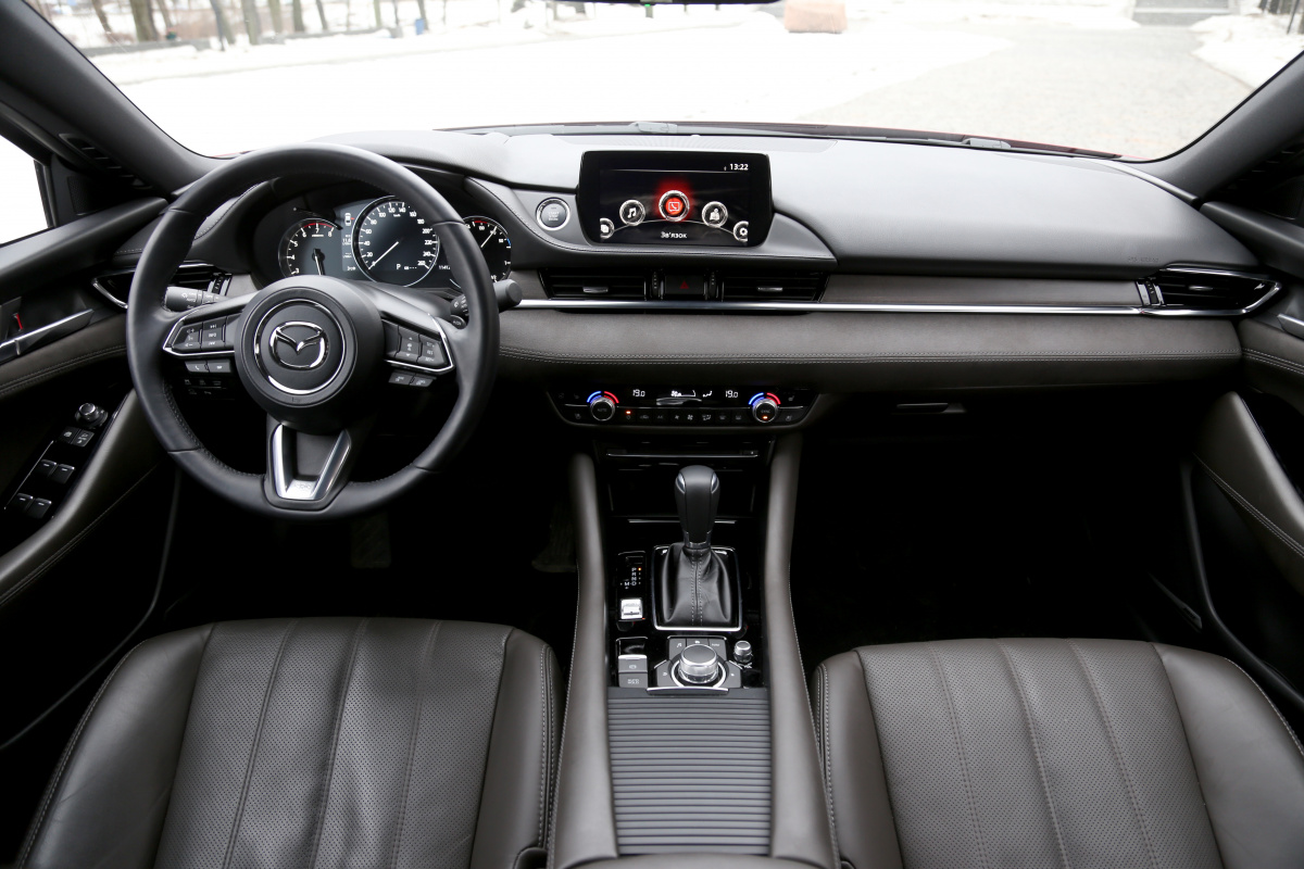 До этого я ездил на Mazda только в качестве пассажира – это был кроссовер Mazda CX-5. Легковая “шестерка” мне очень нравится внешне. Это красивый стильный седан, как и все современные Mazda он очень выделяется снаружи. Плюс этот красный насыщенный цвет – смотрится очень здорово! Внутри все также красиво, на первый взгляд все нравится, но ощущается некоторая нехватка свободного пространства. Но это скорее по ширине, по высоте же все отлично! Ну и низкая посадка – мне после кроссовера немного непривычно.