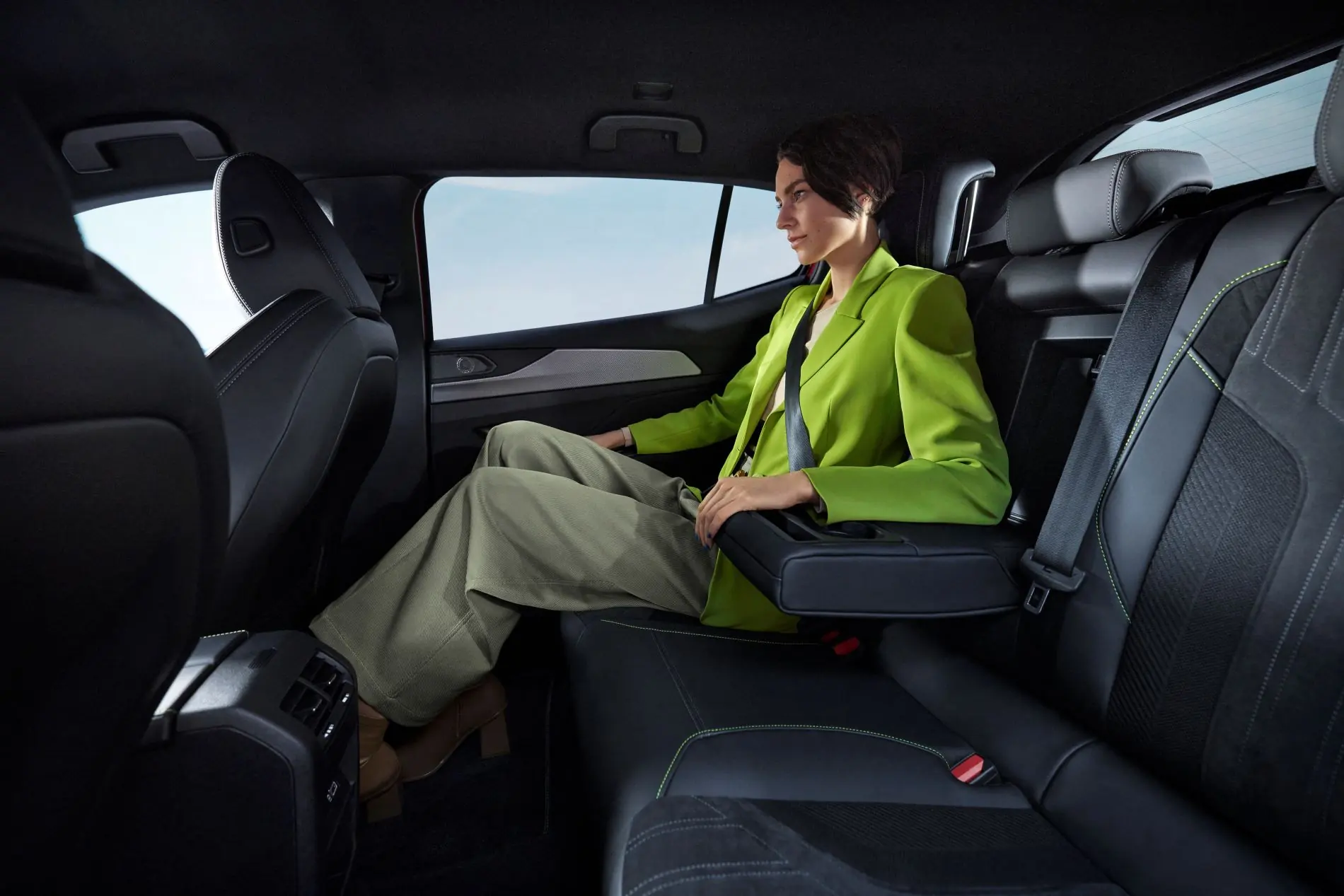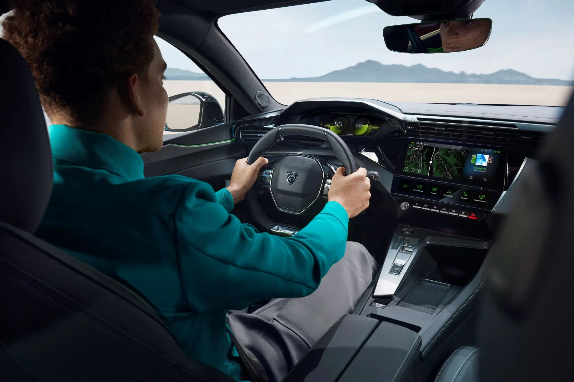 Оформлення інтер'єру очікувано відповідає сучасній концепції Peugeot i-Cockpit. Високо розташована електронна панель приладів, невелике ергономічне кермо і футуристичний дизайн. На центральній консолі розташований 10-дюймовий екран мультимедійної системи i-Connect Advanced. Система підтримує голосове управління і активується фразою "ОК Peugeot". Керувати голосовими командами системою можна так само як і Гугл-помічником або Сирі.