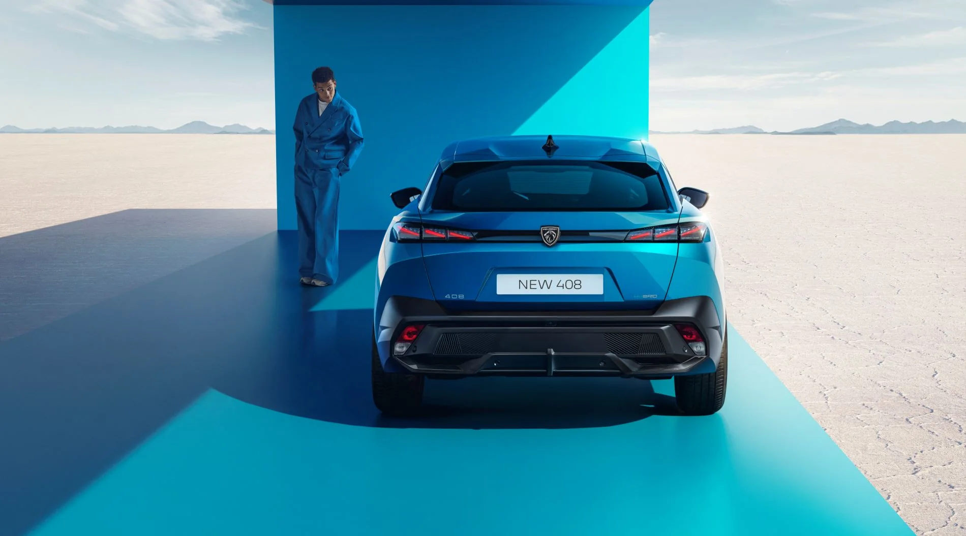 Новий 408-й розділив платформу EMP2 з актуальним поколінням Сitroen С4, якому відвели роль моделі, що тяжіє до теми кросоверів, за рахунок збільшеного дорожнього просвіту і захисного обвісу по низу кузова при тій же платформі і компонуванні новий 408-й апелює до зовсім інших цінностей. Похилі кузовні стійки, агресивне оформлення передньої частини з фірмовою безрамковою решіткою радіатора, яка плавно перетікає під фари і ніби об'єднує весь передок в один великий блок.