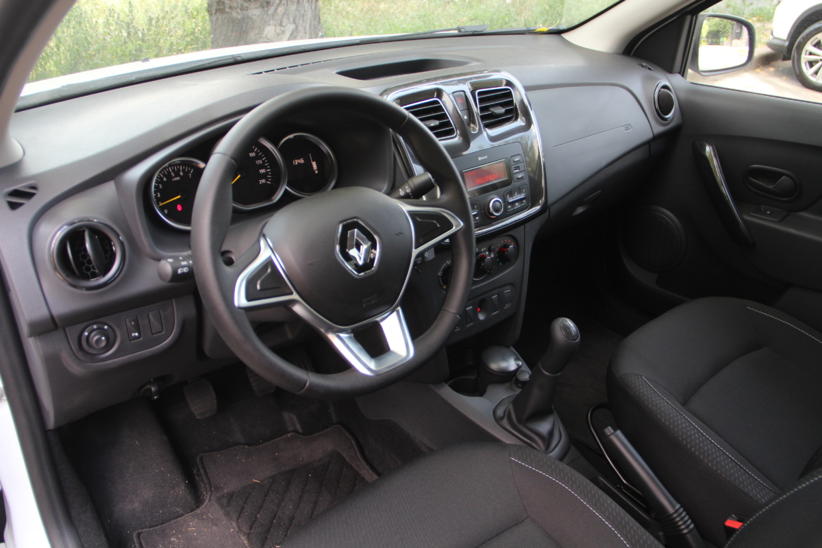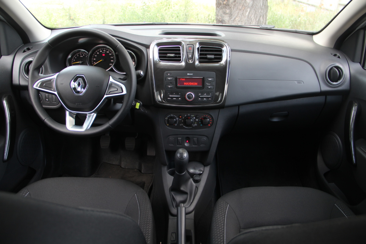 Из полного списка опций в нашей версии модели не хватает только легкосплавных дисков и мультимединой системы с 7-дюймовым сенсорным экраном и навигацией. В более мощных модификациях обновленный Логан также можно дооснастить камерой заднего вида и климат-контролем.