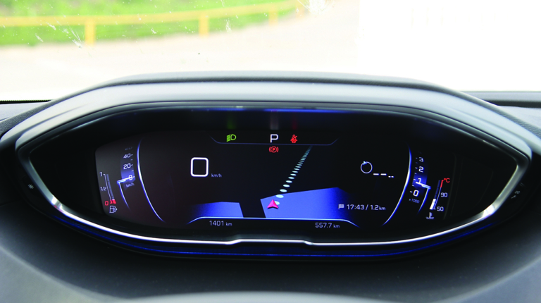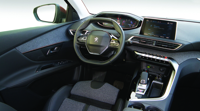Панель приладів «космічна», хоча дуже функціональна. Фірмова концепція керування автомобілем i-Cockpit з невеликим за розмірами кермом і панеллю приладів над ним прижилася не тільки на легкових моделях, а й впроваджена на кросовері. Вона дає змогу повною мірою відчути насолоду від керування автомобілем, а також точно маневрувати на бездоріжжі. Панорамний дах робить салон не тільки світлішим, а й неначе ще більш наповненим повітрям.