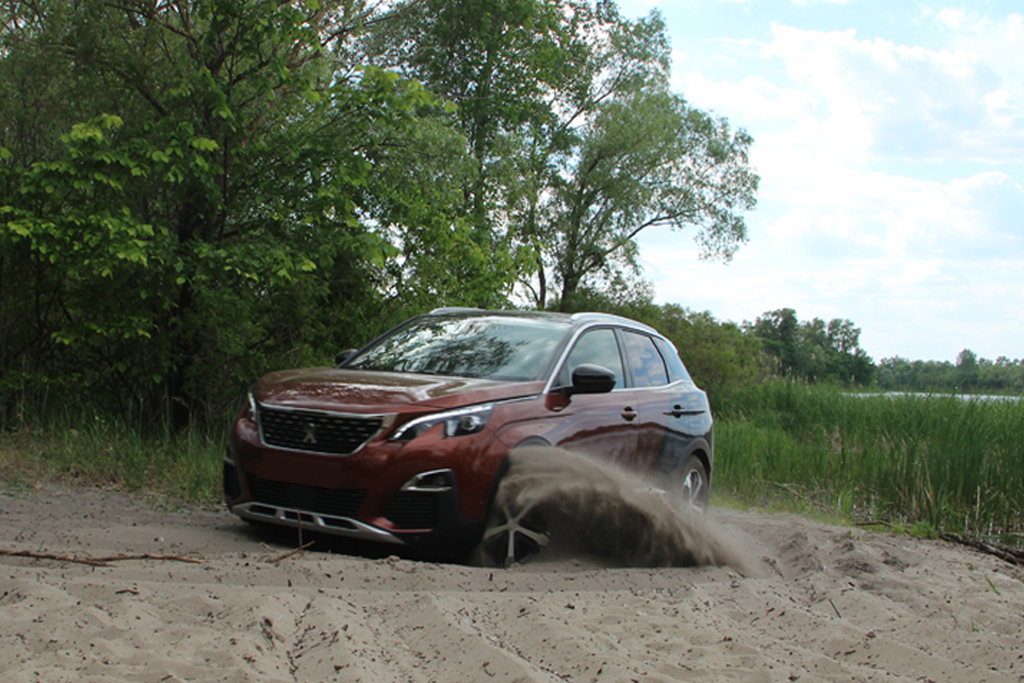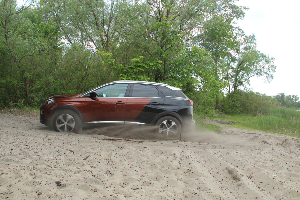 Робота режиму «Пісок» нам не дуже сподобалася – сипкі грунти Peugeot 3008 набагато впевненіше проходив у режимі «ESP Off», тобто повним ходом з контрольованим водієм положенням педалі акселератора.