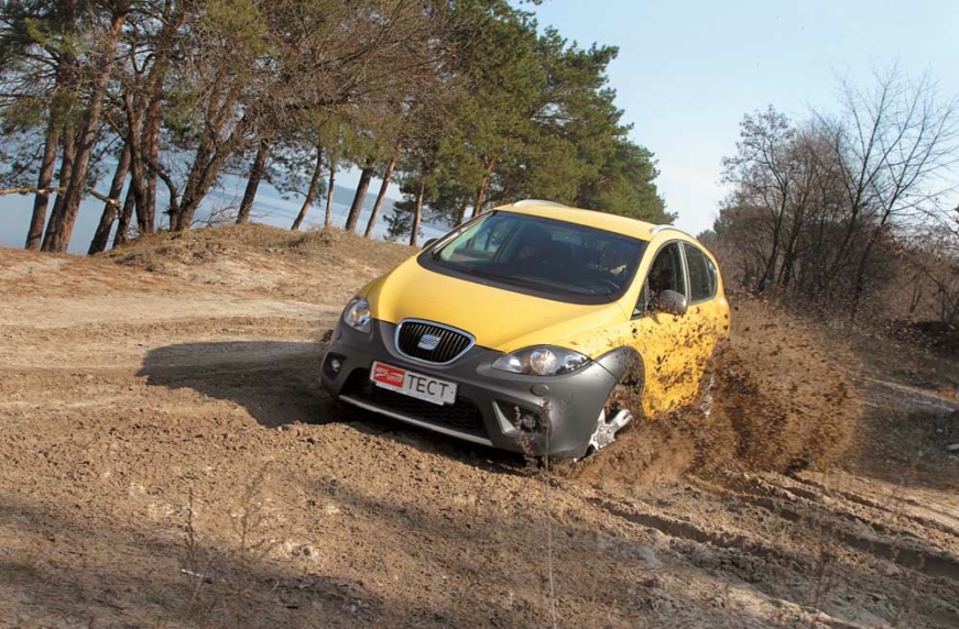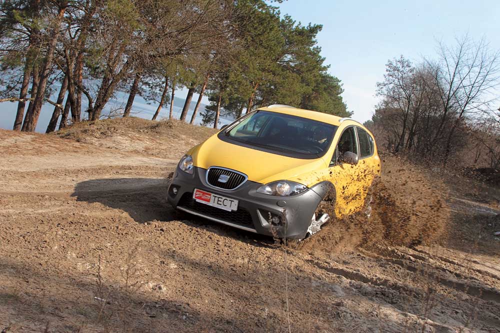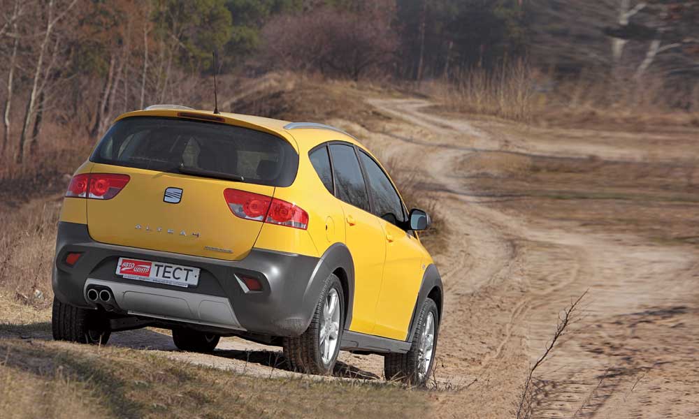 Благодаря коротким свесам и немалому клиренсу у Altea Freetrack хорошая геометрическая проходимость. Автомобиль может дать фору многим SUV. Но как и у всех «заточенных» под быструю езду машин, у Freetrack короткий ход подвески. Поэтому на пересеченной местности автомобиль легко отрывает колеса от земли. С пробуксовыванием вывешенного колеса борется ESP, которая, подтормаживая его, имитирует блокировку межколесного дифференциала.