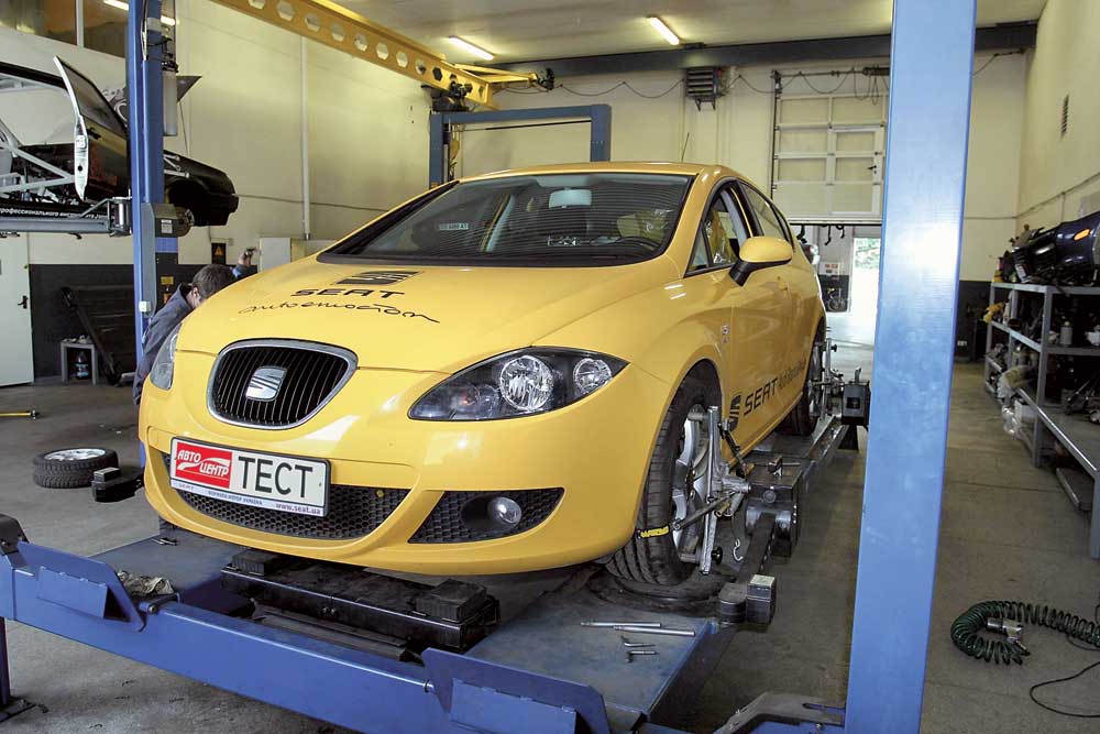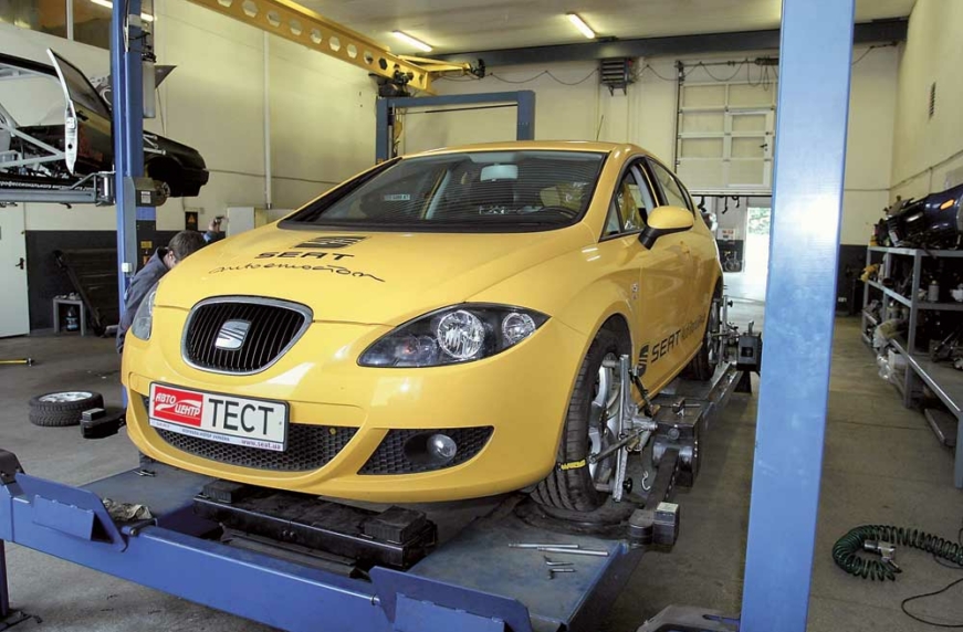 Двухлитровый Leon в течение всего года был в редакции нарасхват. Всем хотелось заполучить разъездной автомобиль, совмещающий характер спорткара с удобством «повседневного» авто. Машину эксплуатировали в ежедневном режиме, преимущественно в столице. За год наездили почти 21 тыс. км. Кроме того, что автомобиль был безотказной каждодневной «развозкой» для всех журналистов редакции, он ездил в несколько командировок по Украине, на нем иногда совершенствовали водительское мастерство, а также использовали его как агрегатоноситель для тестов покрышек. В общем, год такой езды спокойно можно защитывать за полтора, как трудовой стаж на вредных производствах. Диагностов СТО, оснащенной надлежащим образом, мы попросили проверить – как все это повлияло на его «здоровье»?