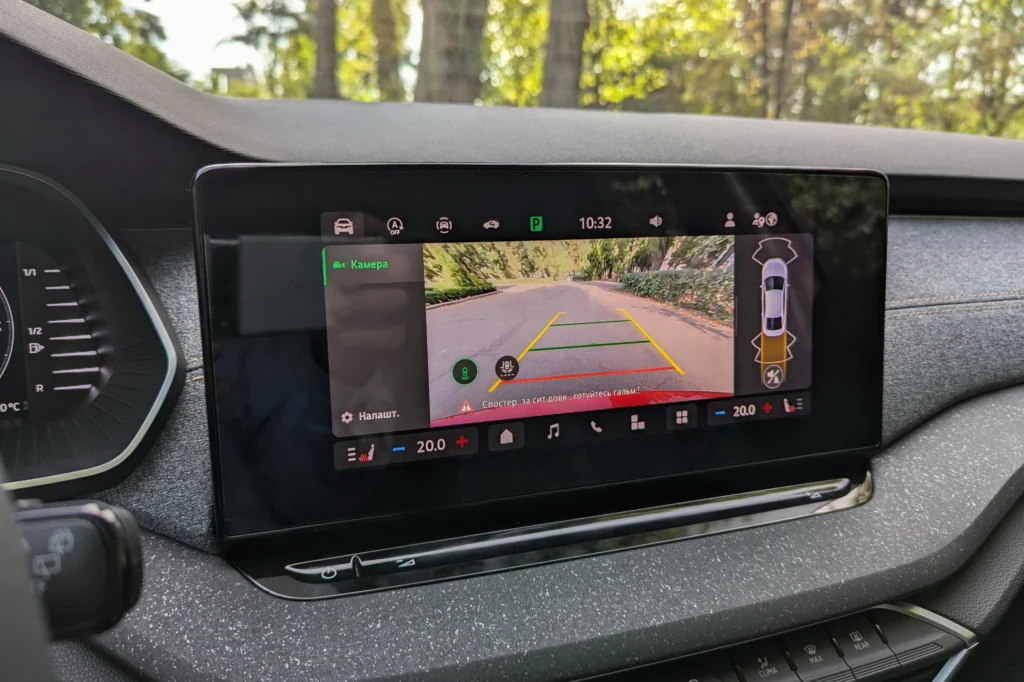 Головними елементами салону є опційна цифрова панель приладів Virtual Cockpit з 10-дюймовим дисплеєм та 10-дюймовий дисплей інформаційно-розважальної системи Skoda (на топових версіях – 13-дюймовий). На них виводиться багато корисної інформації про роботу електронних систем автомобіля, включаючи систему паркування останнього покоління. Зображення на панелі приладів можна змінювати з урахуванням персональних переваг від лаконічної "картинки" з мінімумом інформації до розгорнутої барвистої панелі з традиційними шкалами спідометра і тахометра, а також різними оперативними даними.