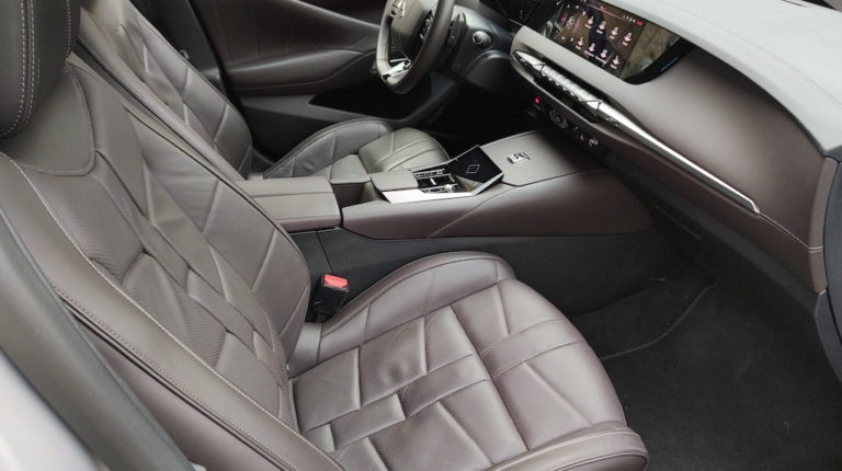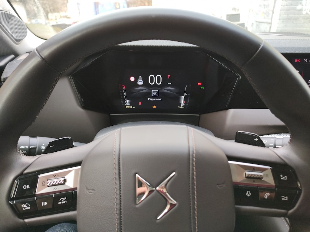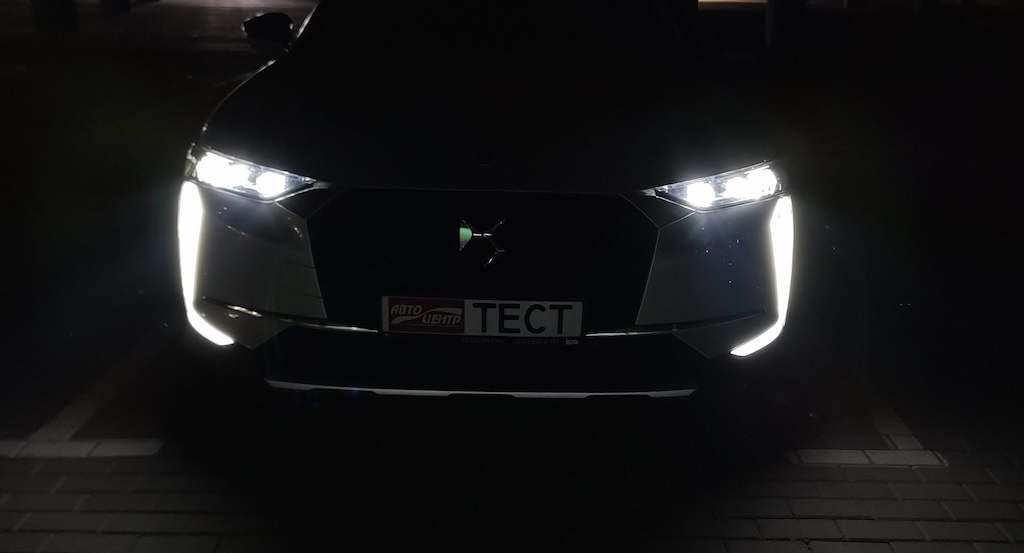 Дизайн екстер’єру отримав помітні гострі кути та грані, а також безліч дрібних деталей та елементів. Перші дні тесту щоразу, як я підходив до машини, відкривав для себе якийсь новий цікавий ракурс або фішку в її дизайні! Ручки дверей в одній площині з ними, ромбоподібні мотиви у ліхтарях та виразний світловий автограф, створений за допомогою L-подібних денних ходових вогнів. Світлодіодні матричні фари DS MATRIX LED VISION – це стандартне оснащення. Вони вміють автоматично адаптувати світло фар до умов дорожнього руху і не засліплювати інших водіїв.