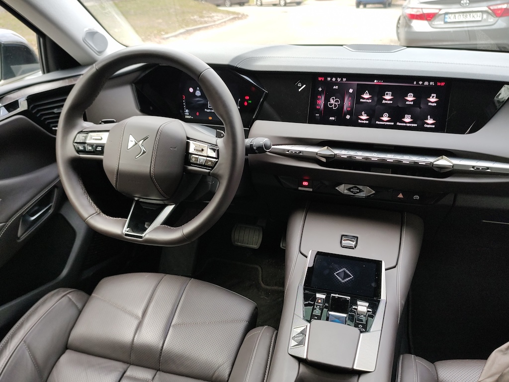 Щодо самої мультимедійної системи DS IRIS SYSTEM, то вона має гарну графіку, швидко працює та вирізняється можливістю тонкого налаштування – можна створювати власні “робочі столи”, керувати “віджетами”, обирати кольори та теми. За філософією дуже нагадує сучасні смартфони. Але, як на мене, розробники трохи перегнули і меню отримало такі хитросплетіння, що деякі функції так сходу і не знайдеш. А якщо і знайдеш, то не в тих розділах, де розраховував. Для автомобільного меню вийшло якось занадто складно. Та не функціонал не поскаржишся – тут є бездротовий Android Auto та Apple CarPlay, що конектяться зі смартфоном без жодних нарікань.
