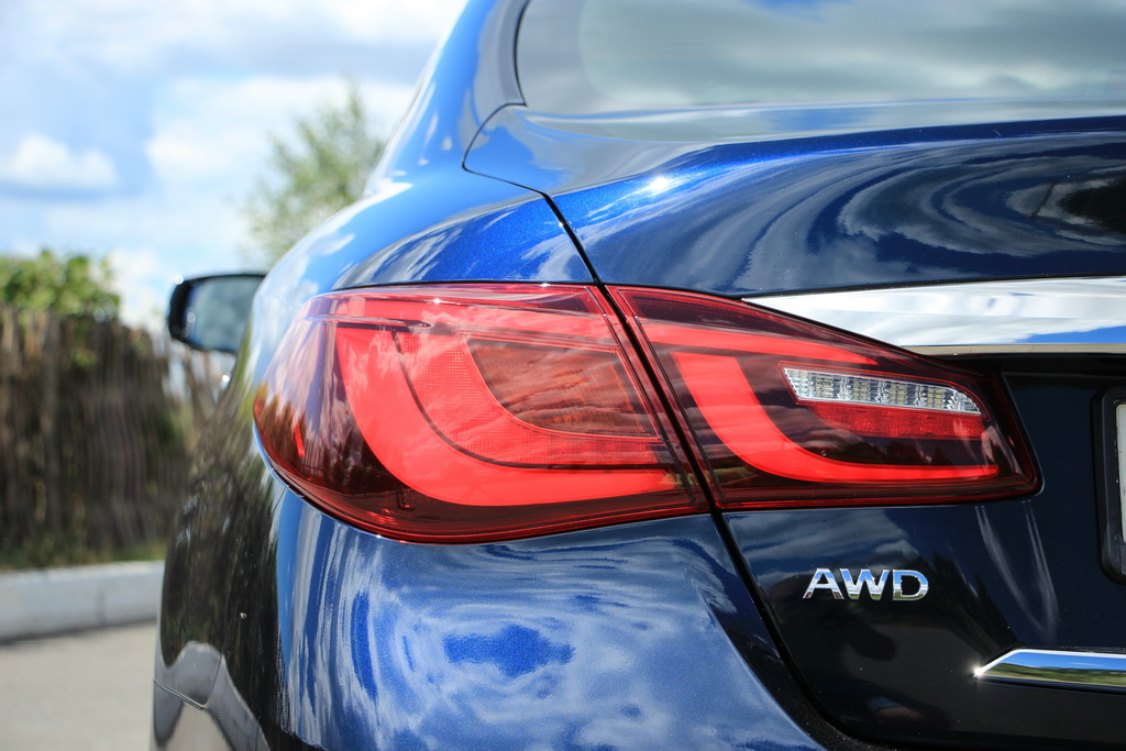 В Україні оновлений Infiniti Q70 оснащений 2,5-літровим двигуном (222 к с.) і заднім приводом або 3,7-літровим потужністю 333 к.с. і повним приводом. Якраз такий седан ми тестуємо. Хоча і тут у штатній ситуації вся тяга передається заднім колесам.