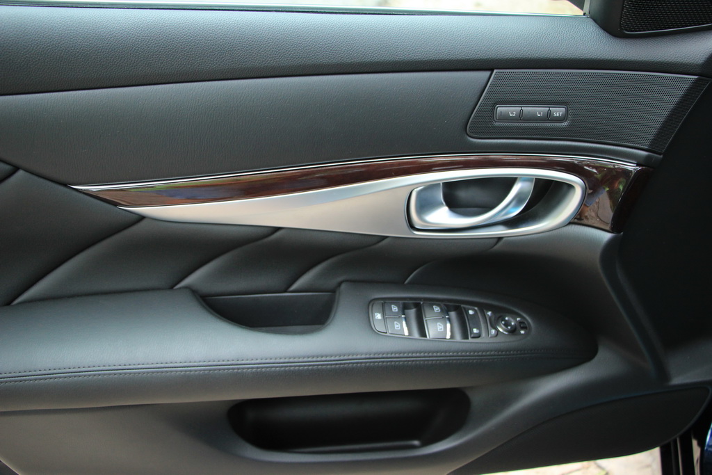 Дизайн і ергономіка інтер’єру, графіка щитка приладів і великого кольорового монітора – все це знайоме. Найімовірніше, ідея з двома сенсорними екранами на центральній консолі як в Infiniti Q50, на цій моделі може бути реалізована після її поновлення. Втім, у Infiniti М, а потім і Q70, завжди був особливий дизайн торпедо з характерним «мисом» центральної консолі. До речі, як мені здається, він найбільше відповідає дизайну екстер’єру, зокрема, опуклій радіаторній решітці.