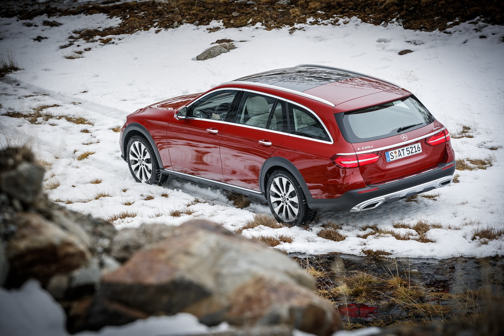 Адже я не очікував такого підступу! Було ж сказано зрозуміло і чітко: спочатку взимку 2017 року в продаж надійде тільки одна модифікація Mercedes-Benz E-Class All-Terrain із дизельним дволітровим мотором потужністю 194 к.с. І тільки потім, цілком можливо, восени, додасться потужніший E-Class 350d з арсеналом аж 284 к.с. Звідки б він міг взятися тут, на тесті в Австрії, де презентували перші серійні All-Terrain? Але ні, дівчина не жартує: вони справді є, але я пересилюю себе і обираю саме дволітровий Е-клас – все-таки ця модель вже в лютому 2017 року з’явиться в Україні. … Червоний! Не тому, що я одним із перших в цій країні погодився з тим, що Mercedes справді може бути такого кольору, а тому, що цей автомобіль в червоному кольорі має дуже крутий вигляд, а в цьому виконанні – особливо.