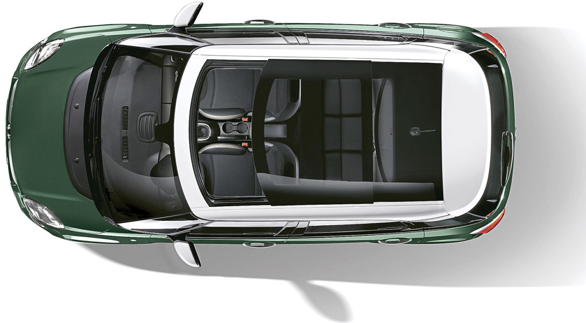 Fiat 500L может быть оснащен одним из самых больших в классе панорамным стеклом на крыше. Ее передняя часть может сдвигаться