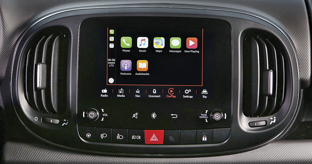 В салоне также есть схожесть и с 500, и с 500Х. Но все же интерьеры индивидуальны. По центру торпедо установлен 7-дюймовый монитор мультимедийной системы Uconnect. И он заслуживает похвалы. Экран матовый, не бликует, очень четкий, прорисовывает все детали без задержек, тачскрин чувствительный. Система работает с современными смартфонами и даже может отмечать свое местоположение в Facebook и Twitter. На экран выводится как информация со смартфона, так и картинка камеры заднего вида, навигация, данные борткомпьютера.