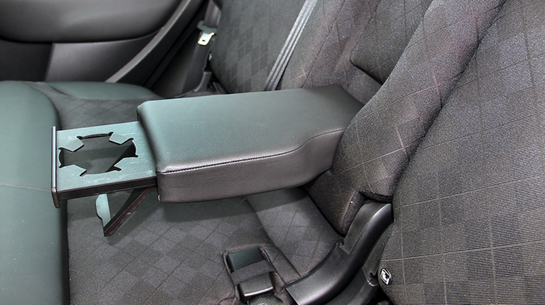 Сзади очень просторно даже высоким людям. Правда, посадка у них вертикальная. Здесь есть два подстаканника, USB-разъем, а также – два откидных столика, которые не мешают коленям, раскрываясь значительно выше ног. Центральный тоннель небольшой, а двери открывается широко.