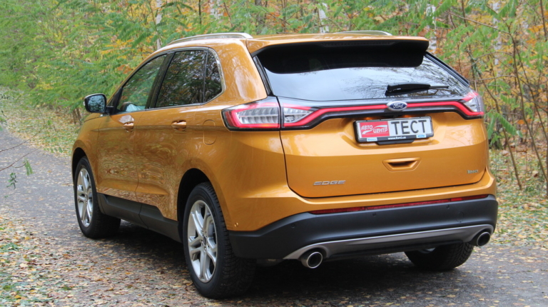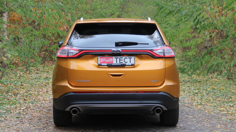А от корма нового Еджа з величезним спойлером і аеродинамічними плавничками з боків заднього скла, на мою особисту думку, має дуже динамічний вигляд. І світлодіодна смужка ліхтаря на всю ширину дверей багажника – не просто оригінальна фішка. Вона служить чітким посланням до Ford Edge першого покоління і деяких інших американських авто.