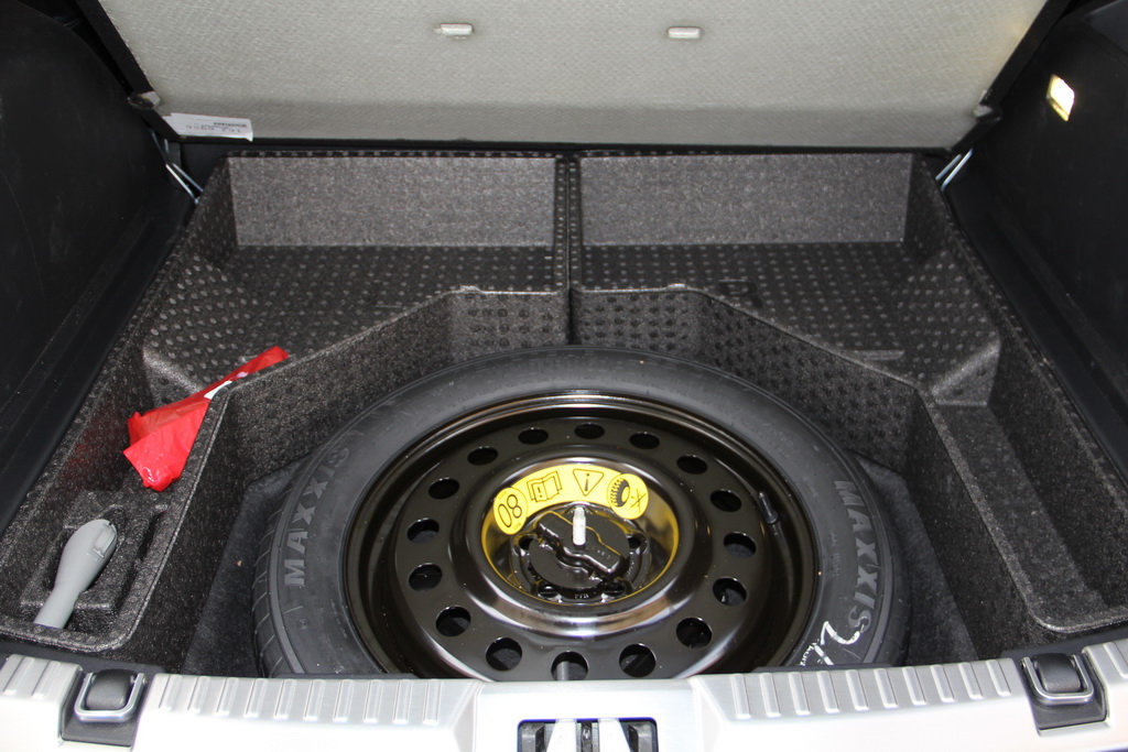 Кришка багажника помахом ноги не тільки відчиняється, а й зачиняється. Це зручно, коли не кладеш, а забираєш великі важкі речі. В багажнику також є розетка. Тут – і кнопки дистанційного складання спинок другого ряду. Під підлогою багажника не тільки докатка, а й доволі місткий органайзер.