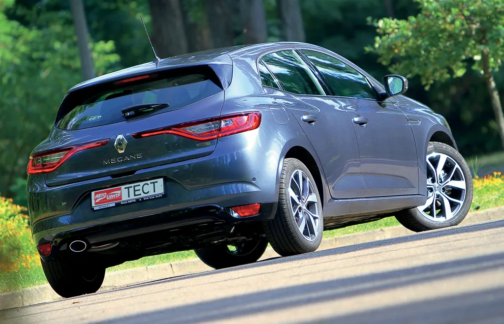 Щодо підвіски, то її конструкція залишилася тією самою, що і у попередньої генерації – стійки McPherson спереду і балка кручення ззаду, а от налаштування змінилися кардинально. М’якість і всеїдність ходової третього Megane залишилася в минулому – новинка заточена під драйвову їзду. І це в неї виходить доволі добре. Сприяє цьому і розширена на 44 мм спереду і на 39 мм ззаду колія. Єдиний мінус – деяка неузгодженість в поворотах із невеликими нерівностями: тут чутна робота ходової, та й машину трохи переставляє. Втім, наш автомобіль був оснащений опціонними сімнадцятими колісними дисками з шинами 205/50. Зі штатними колесами R16 і більш пухкими шинами на розбитих дорогах він точно комфортніший.