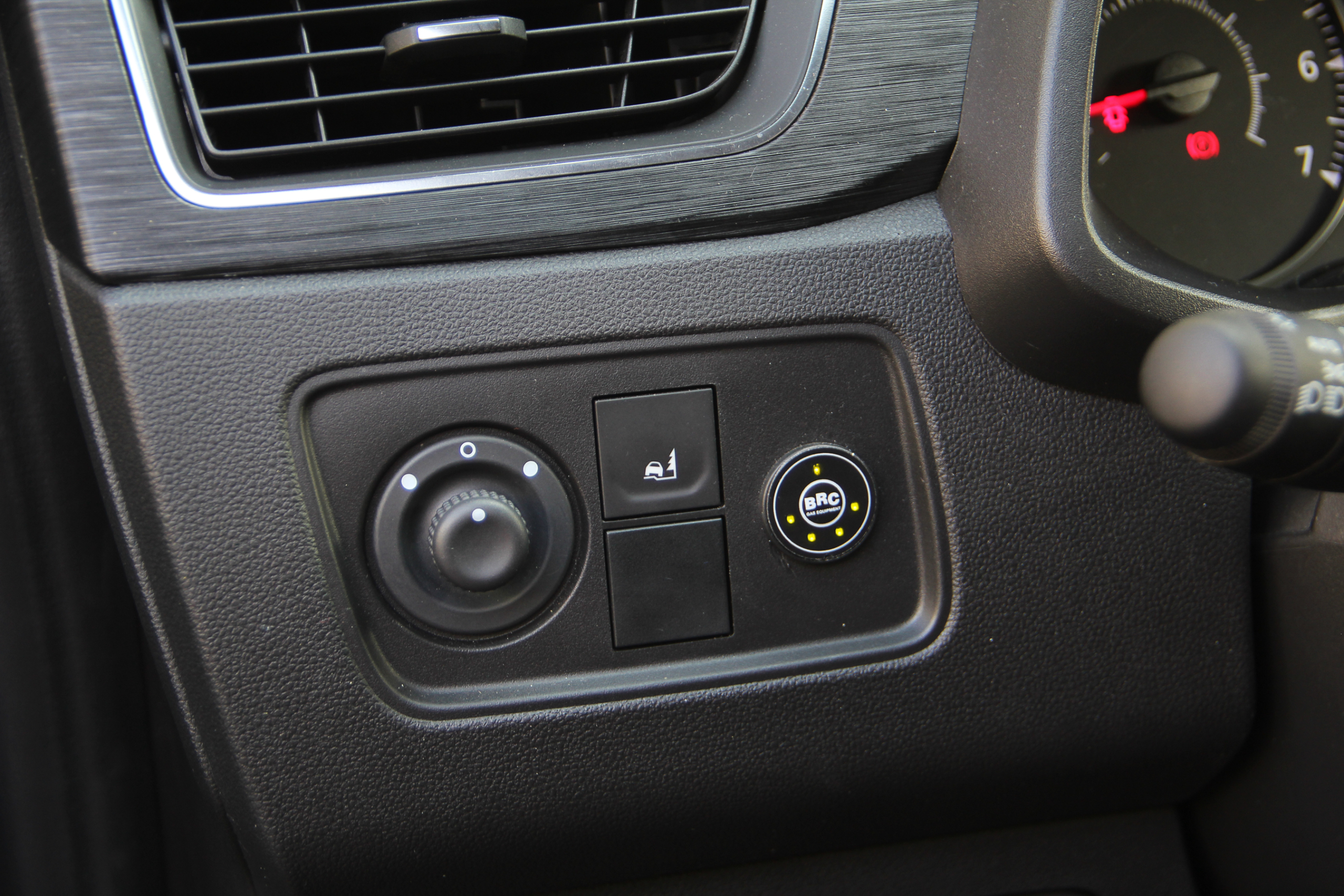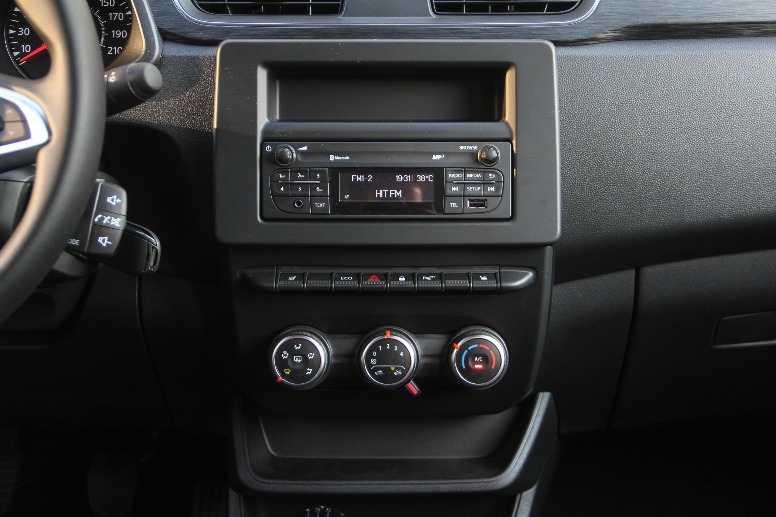 На дотик всі пластики тверді, але візуально виглядають дуже пристойно. Особливо сподобалася декоративна вставка в центрі торпедо. Є тут і елементи, знайомі нам за іншими моделями Renault. Наприклад, горизонтальна смужка клавіш, піктограми яких легко читаються навіть при біглому погляді. “Шайби” регулювань температури обдування (тут простий кондиціонер, не клімат-контроль) справді не такі, як у тому ж Duster, але вже точно краще і красивіше за колишні.