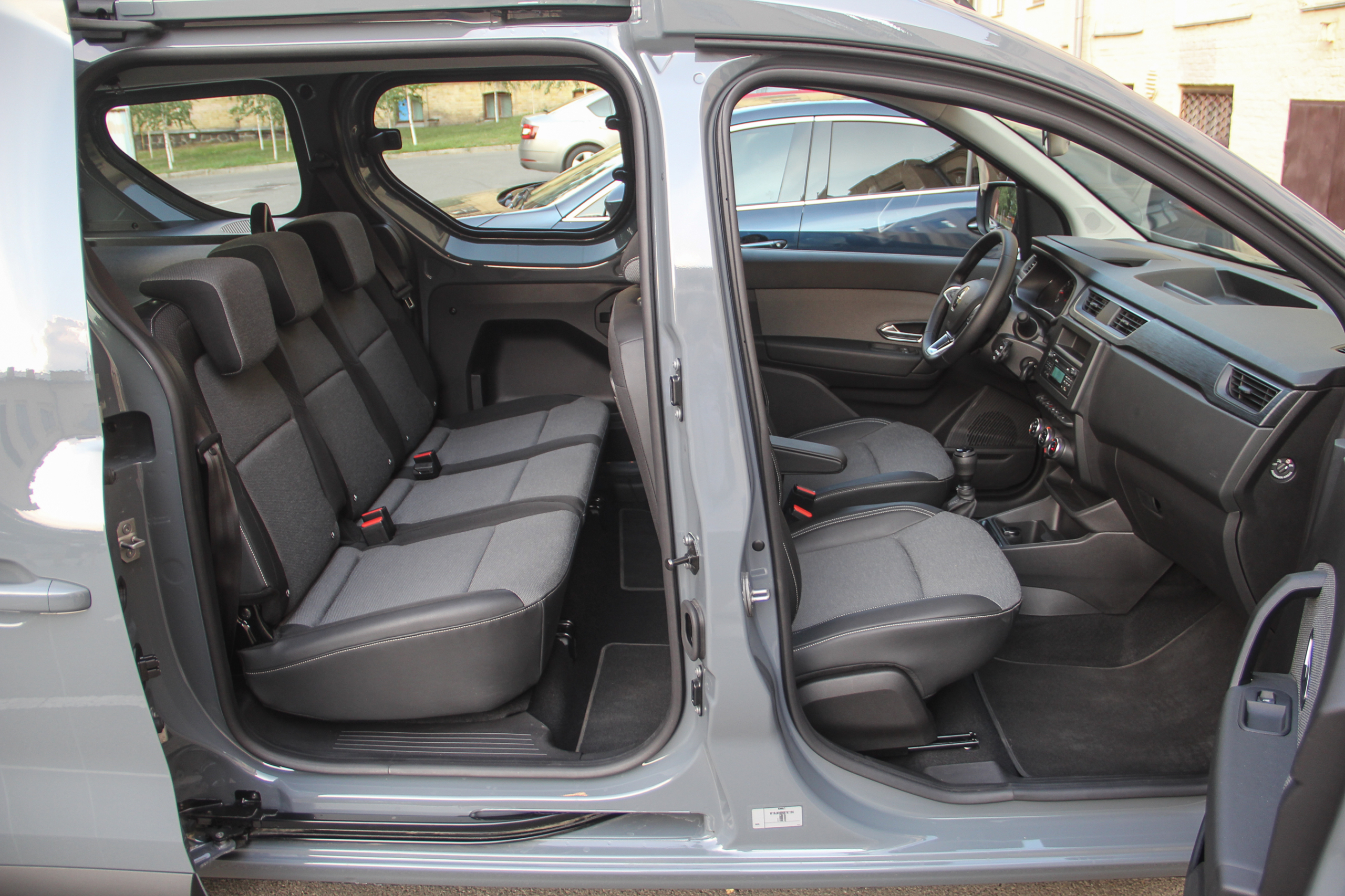Але якщо подивимося в профіль або з корми, то по лінії скла та характерним скошеним ліхтарям упізнаємо Dokker. Хіба що ручки задніх зсувних дверей стали горизонтальними, і по цьому елементу Експрес можна впізнати відразу. До речі, така схема для фургонів вже давно не дивина і є нормою. Але щоразу на тісних парковках (а в місті в основному тільки такі) я тішився зручністю такого рішення! Легкий рух і весь дверний отвір шириною понад 700 мм у моєму розпорядженні!