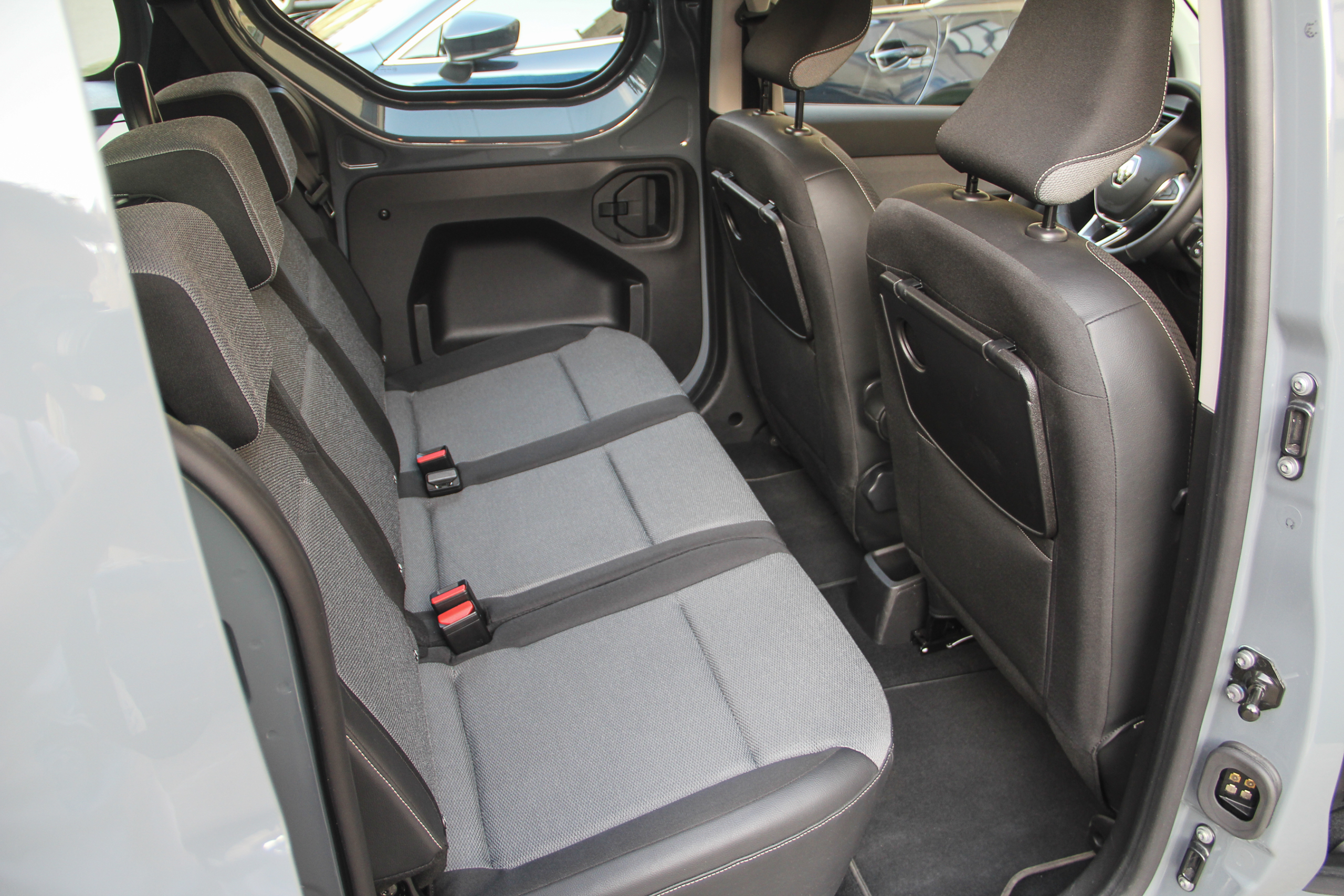 Що стосується другого ряду, то він поділений на три рівних і можна сказати окремих місця (формування тут неглибоке). Як я вже згадував, дверний отвір широкий і до того ж високий, тому посадка сюди максимально комфортна (особливо після легковиків). А ось простору на задніх місцях не так багато. Так, ногами в передні крісла я не вперся, але й запасу майже не лишилося. Частково це компенсується висотою салону – фургон все ж таки! Зазначу, що оздоблення дверей тут простіше, ніж у передній частині салону, є неприкритий метал, але ж ідеться про бюджетну модель.