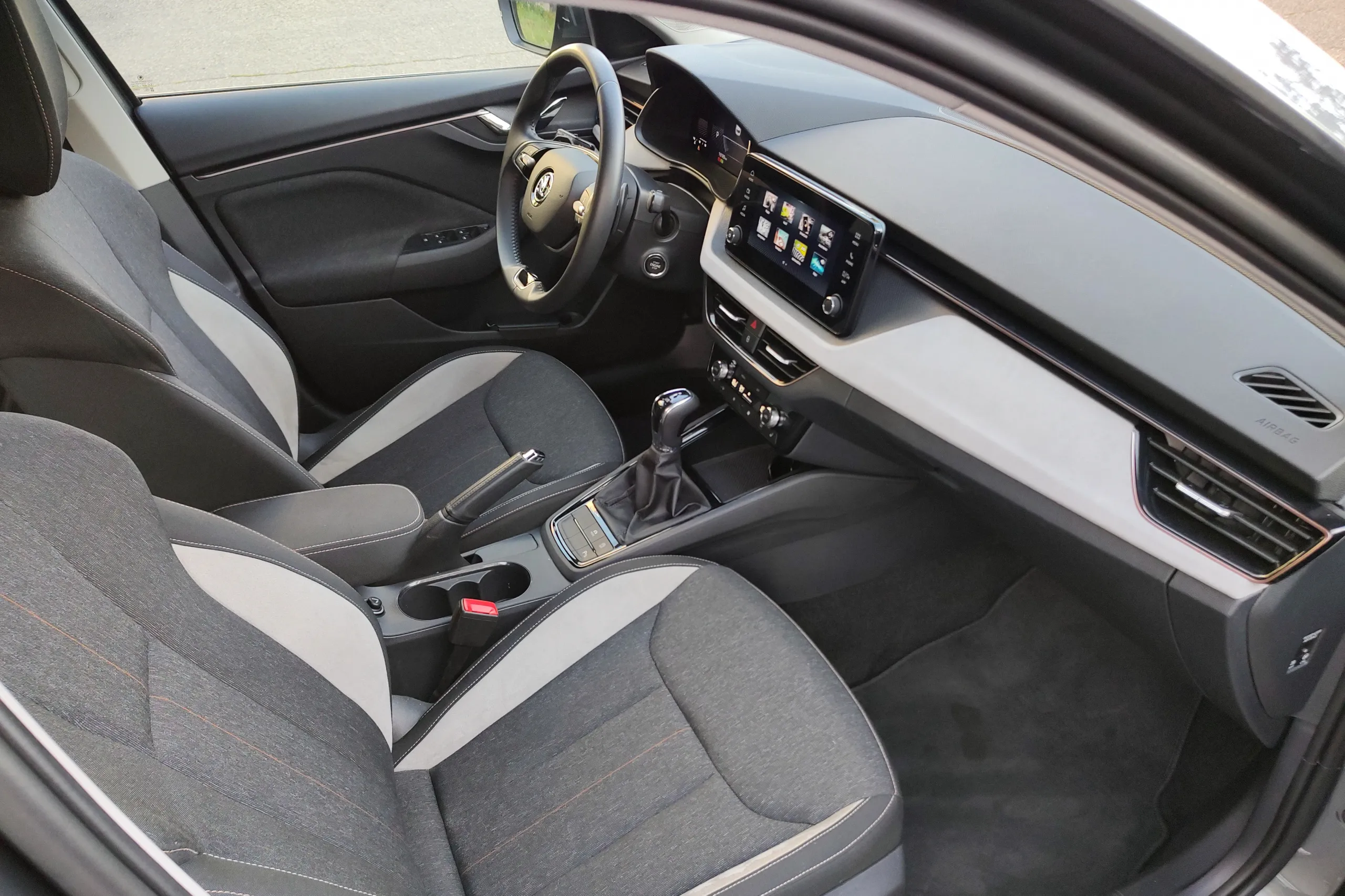 Тестовий Kamiq в комплектації Selection, плюс з певним переліком додаткових опцій. Але вже стандартно тут йдуть, зокрема, двозонний клімат-контроль, дротовий та бездротовий SmartLink Plus, легкосплавні диски та інше. Серед опцій електрорегулювання сидіння водія, вибір режимів руху Drive Mode Select, передні та задні парктроніки із камерою заднього огляду, пакет опцій Light and View.