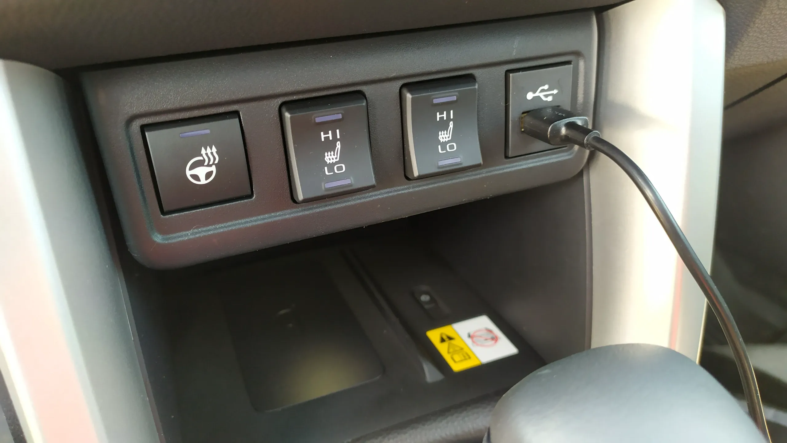 Повертаючись до режимів руху, є можливість окремою кнопкою обрати суто електричний режим, коли ДВЗ взагалі не вмикається. Королла Кросс рухається лише за рахунок електродвигуна, який живиться від літій-іонної батареї (раніше в гібридах Тойоти використовували літій-металогідридні батареї, які були більші та важчі на 14%). В нового Corolla Cross Hybrid батарея має ємність 4,08 Ампер*год. Вона складається з 60 комірок, кожна з яких видає по 3,7 вольта.