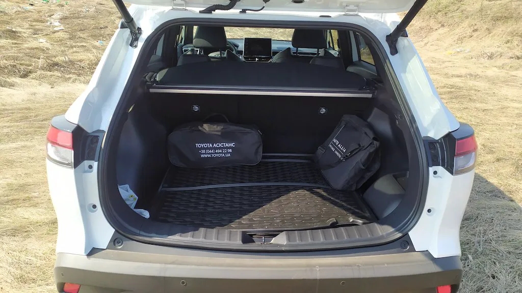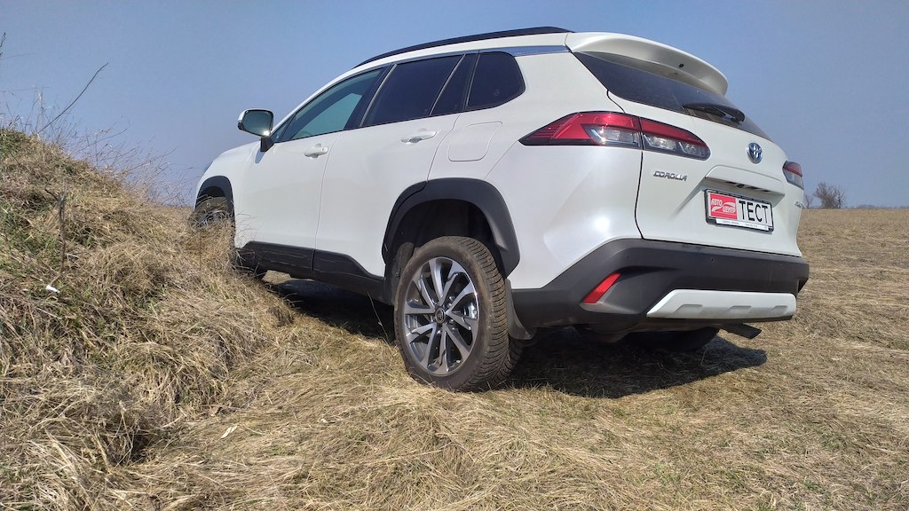 Щодо позашляхового потенціалу, на який натякають захисні накладки по низу кузова та на арках коліс, а також власне слово Cross в назві, то тут простір невеликий. В Україну версії з повним приводом не завозяться, та й дорожній просвіт в 16 см не дуже спонукає до їзди по бездоріжжю. Проте виїхати на природу й вести активне життя на Corolla Cross цілком можливо, що видно з наших фото.