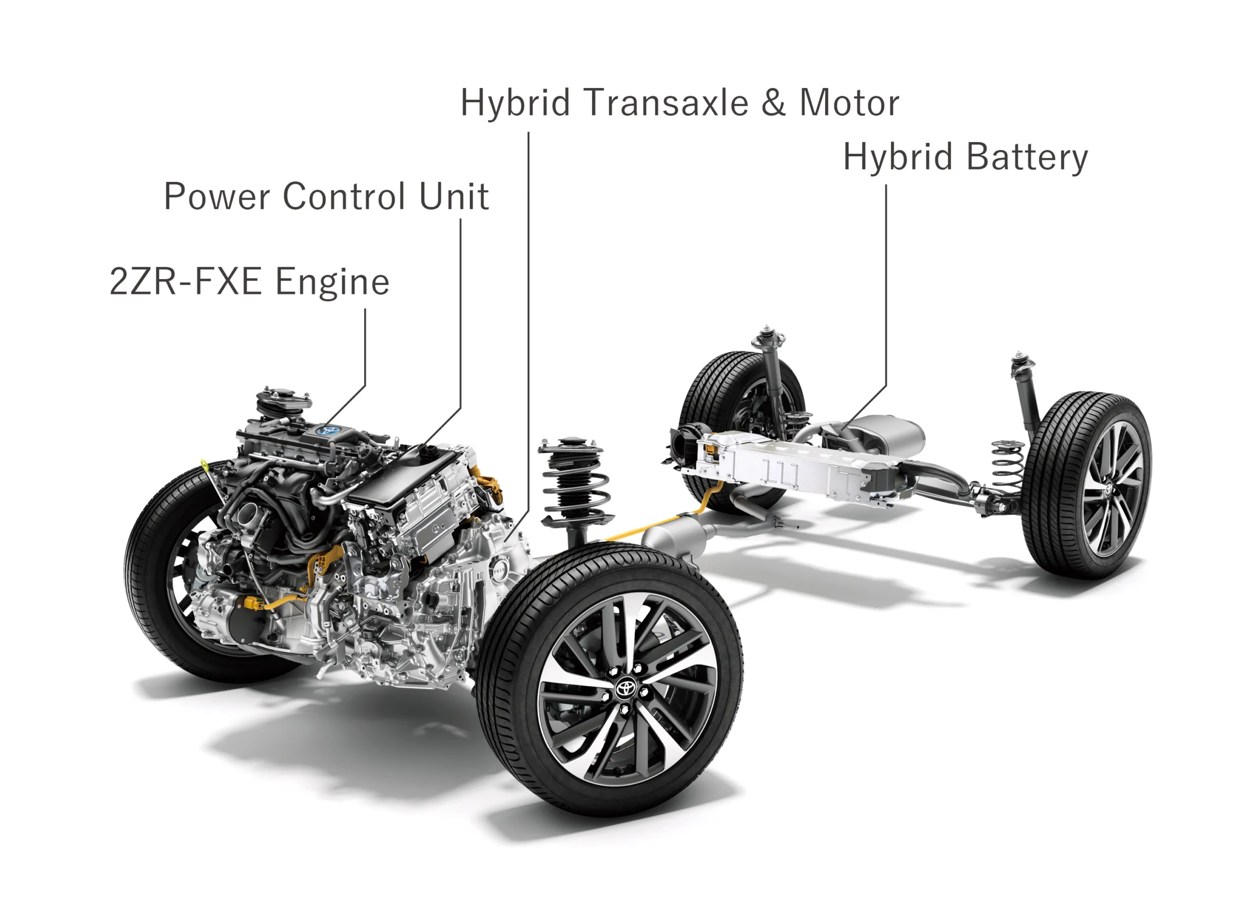 Перед тим, як говорити про те, як Corolla Cross їздить, варто розібратись, що її рухає. Corolla Cross — це перша модель, оснащена гібридною технологією Toyota 5-го покоління, що передбачає використання легших і більш компактних компонентів. Її гібридна силова установка складається з бензинового та електричного двигуна. Обидва мотори підключено до планетарної передачі e-CVT, яка виконує роль автоматичної коробки передач.