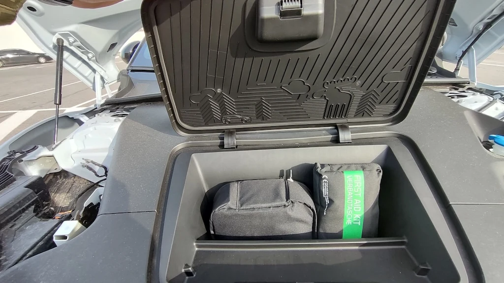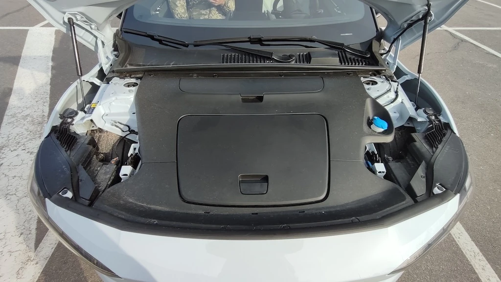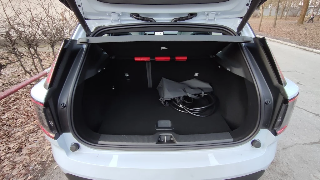 Багажник не великий і має обʼєм 318 л. Проте, під підлогою ще одне відділення на 61 л. І не варто забувати, що в передній частині, під капотом ще одне додаткове, хоча і невелике (7 л) відділення. Тут зручно буде возити провід для зарядки авто.