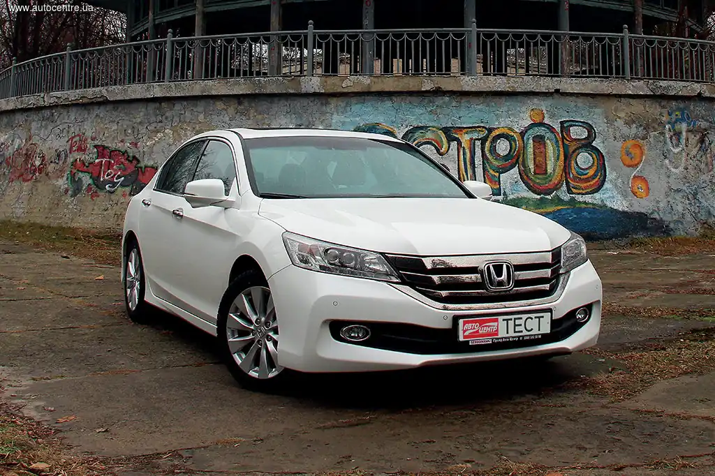Внешность автомобиля сделали более монументальной: решетка радиатора – словно в кроссовере Crosstour и увенчанная крупной эмблемой, более массивные бамперы с выраженными углами. Вот и зазвучал Accord солиднее.