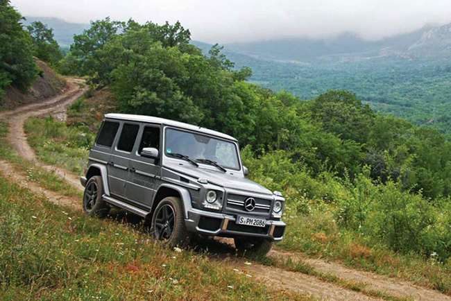 В каждом вираже G-класс напоминает, что он задуман и реализован как настоящий внедорожник. Каким он и остается. Правда, загонять шикарный и дорогущий Mercedes-Benz в грязь – это то же самое, что идти с автоматом на охоту: убойная сила поразительная, но как-то неэтично выходит. Впрочем, он до сих пор собирается по военным лекалам: на крепком костяке мощной рамы закреплены неразрезные мосты. И хотя уже десять лет как все Gelandewagen’ы в базе оснащаются системой стабилизации ESP, которая также имитирует блокировки (на легком бездорожье этого достаточно), механические блокировки центрального межосевого и обоих межколесных дифференциалов, пониженный ряд трансмиссии и отличная геометрическая проходимость – все это тоже осталось. Правда, именно в «Кубиках» от AMG могут пострадать эффектно выглядывающие из-под порогов наконечники глушителей.